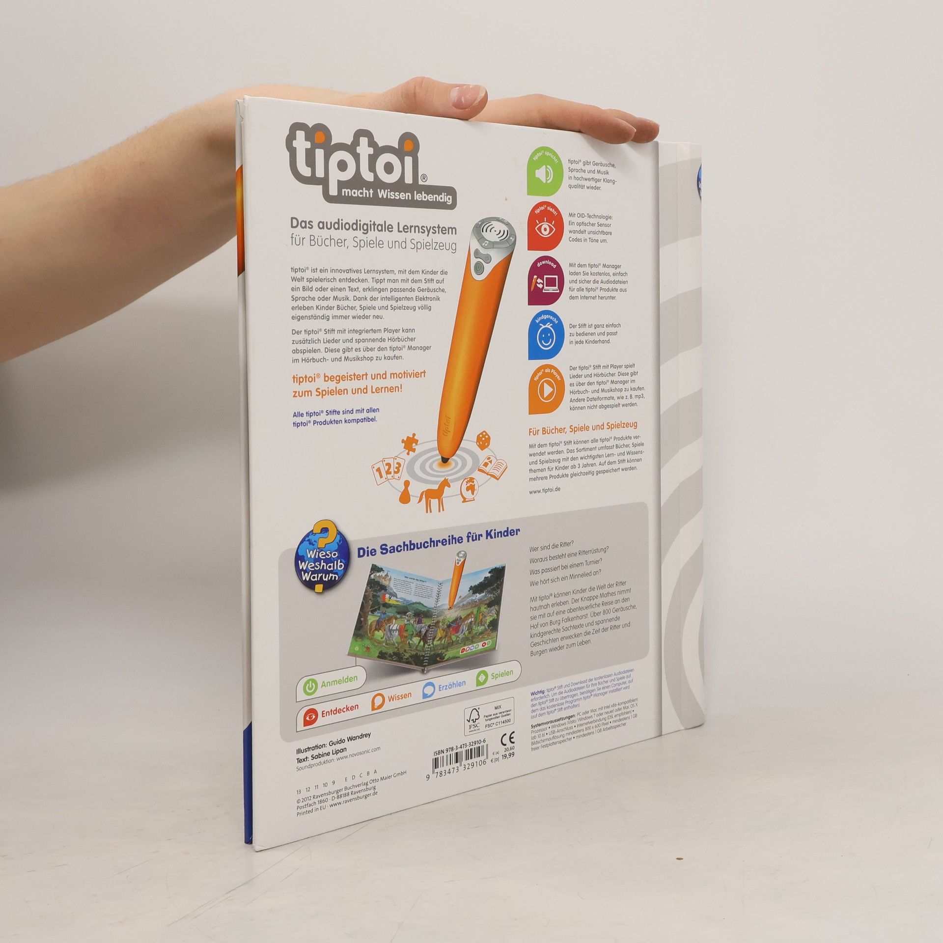 Was waren eigentlich die Aufgaben und Pflichten eines Ritters? Wie sah eine Ritterrüstung aus? Und wie lief ein Ritterturnier ab? Beeindruckende Szenen vermitteln dem Leser ein Gefühl für die historischen Gegebenheiten und stellen den Alltag und das Leben der Ritter vor. Die authentische Geräuschkulisse, die Dialoge, Geschichten und Spiele ziehen jeden kleinen Ritterfan mitten hinein in das Geschehen. So wird eine der faszinierendsten Gesellschaften der Vergangenheit vor den Augen der Kinder wieder lebendig.Was macht der Traktor auf dem Feld? Wann kommt die Feuerwehr? Wie groß wird ein Pony? Die interaktive Sachbuchreihe tiptoi Wieso? Weshalb? Warum? beantwortet wichtige Kinderfragen auf Augenhöhe. Auf den liebevoll illustrierten Seiten tauchen die Kinder in eine Welt ein, die durch zahlreiche authentische Geräusche lebendig wird. Das Sachwissen wird altersgerecht erklärt und ist fachlich geprüft. Die Kinder können sich dank der einfachen und intuitiven Nutzung mit dem tiptoi-Stift das Wissen selbst erschließen. Sie lernen, Zusammenhänge zu begreifen und erfahren spannende Informationen über ihren Alltag und ihre Umwelt. Tolle Geschichten, Lieder und unterhaltsame Spiele laden dabei immer wieder zum selbstständigen Entdecken und Erforschen ein.tiptoi-Stift nicht enthalten. Muss separat erworben werden.