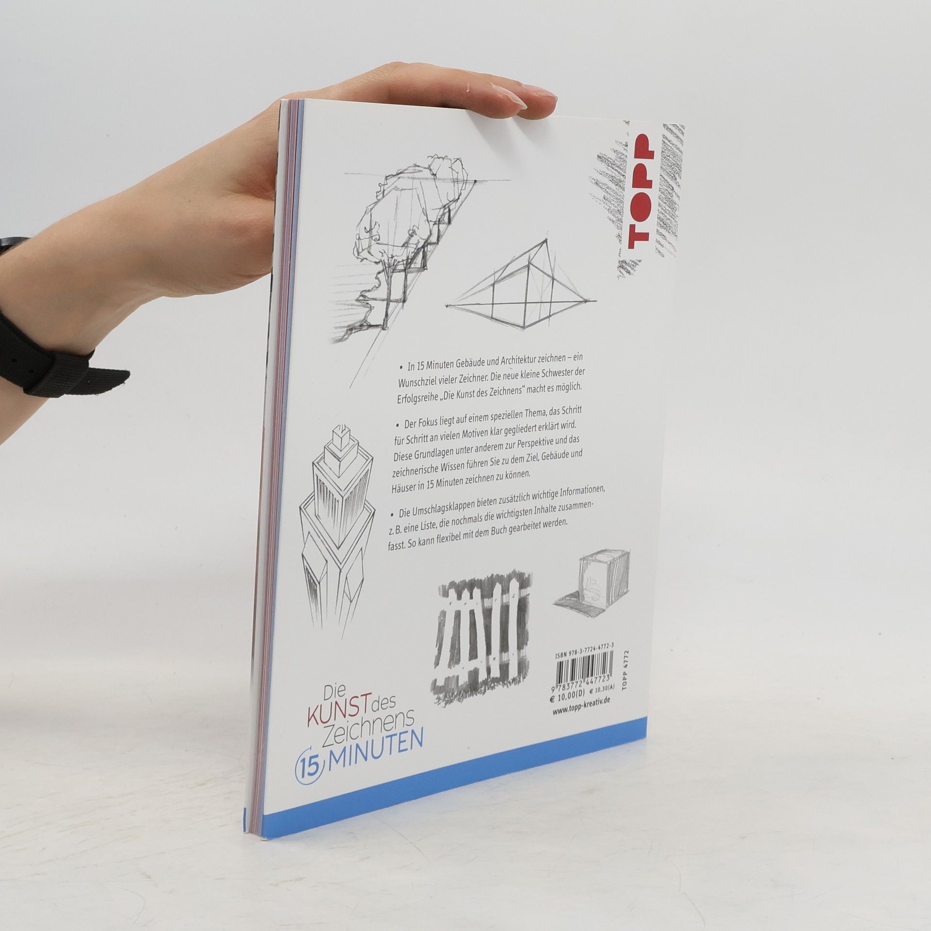 In 15 Minuten Architektur zeichnen - ein Wunschziel vieler Zeichner. Die kleine Schwester der Reihe "Die Kunst des Zeichnens" macht es möglich. Der Fokus liegt auf dem speziellen Thema, das Schritt für Schritt und klar gegliedert erklärt wird. Die Grundlagen und das zeichnerische Wissen führen Sie zu dem Ziel, Architektur in 15 Minuten zeichnen zu können. Eine Liste auf der vorderen Innenklappe fasst nochmals die wichtigsten Inhalte zusammen, die im Buch angesprochen werden. So kann mit dem Buch flexibel gearbeitet werden, denn durch Abhaken behalten Sie stets den Überblick, was Sie bereits können.