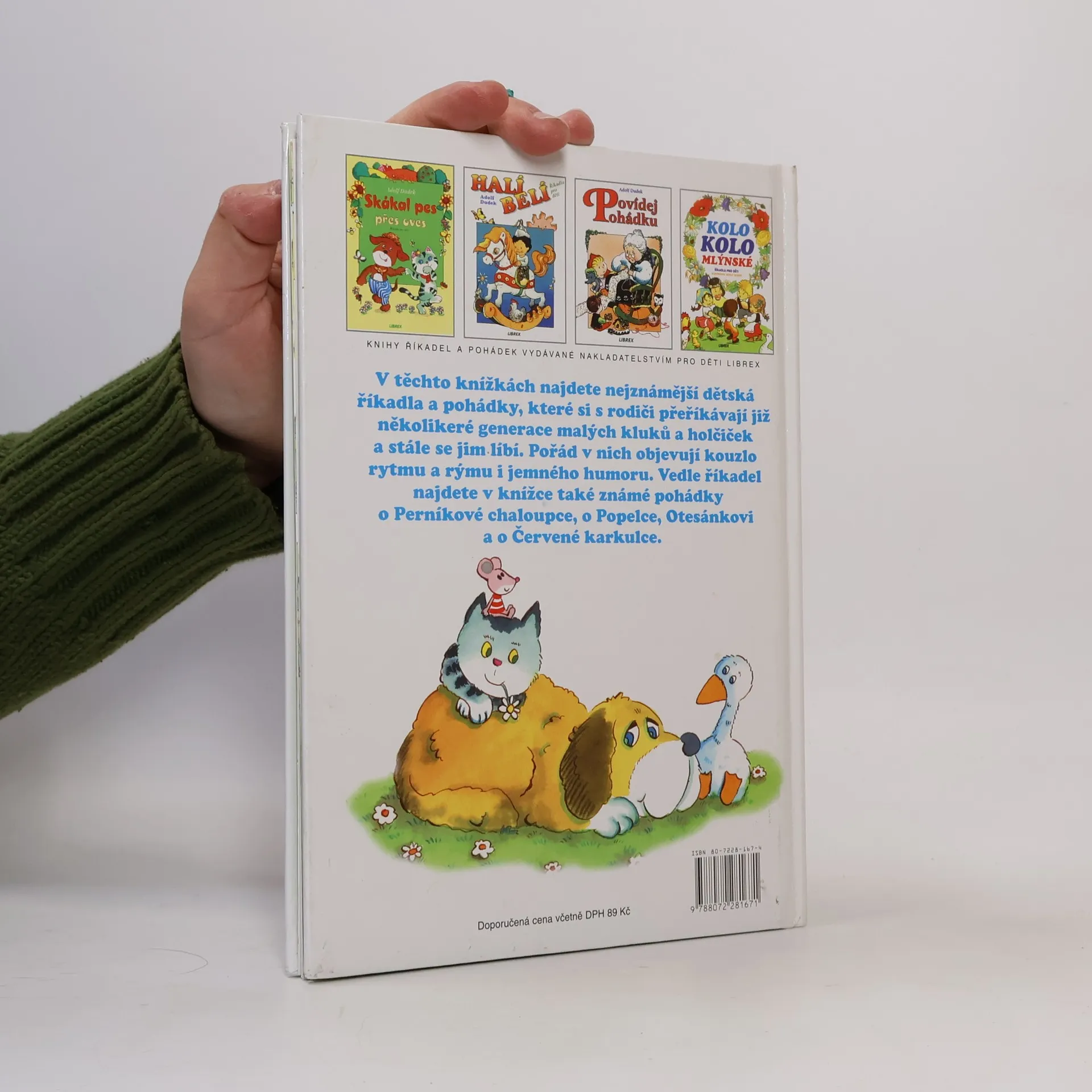 Říkadla a pohádky (O Perníkové chaloupce, Popelce, Otesánkovi a Červené karkulce) doplněné ilustracemi Adolfa Dudka.