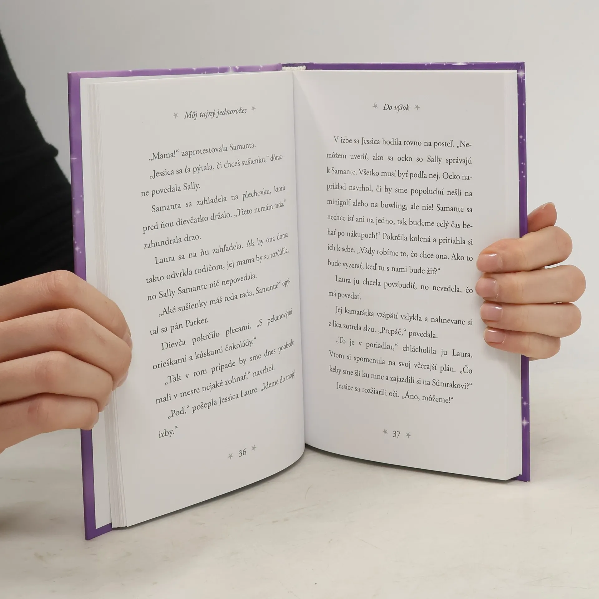 Súmrak síce vyzerá ako obyčajný poník, no zakaždým keď Laura vysloví slová čarovného zaklínadla, premení sa na jednorožca a spoločne lietajú oblohou… Laurina kamarátka Jessica má doma vážne problémy, a tak dva týždne pred plánovanou svadbou svojho ocka radšej utečie z domu. Na to, abyjej Laura so Súmrakom pomohli, jej budú musieť prezradiť svoje starostlivo chránené tajomstvo. Dokážu Jessicu presvedčiť, aby im dôverovala, a ukázať jej, že aj jej život môže pripomínať lietanie v oblakoch?
