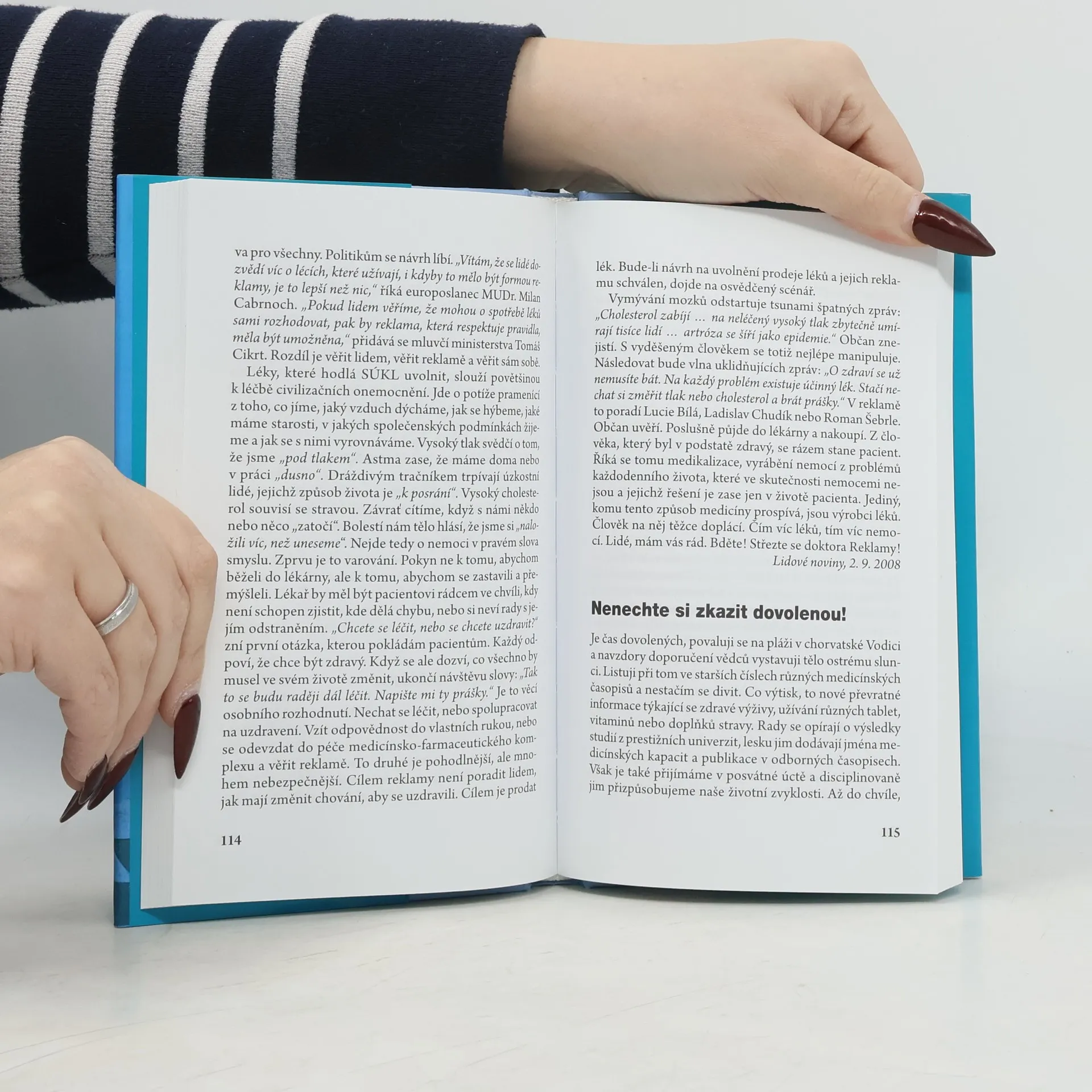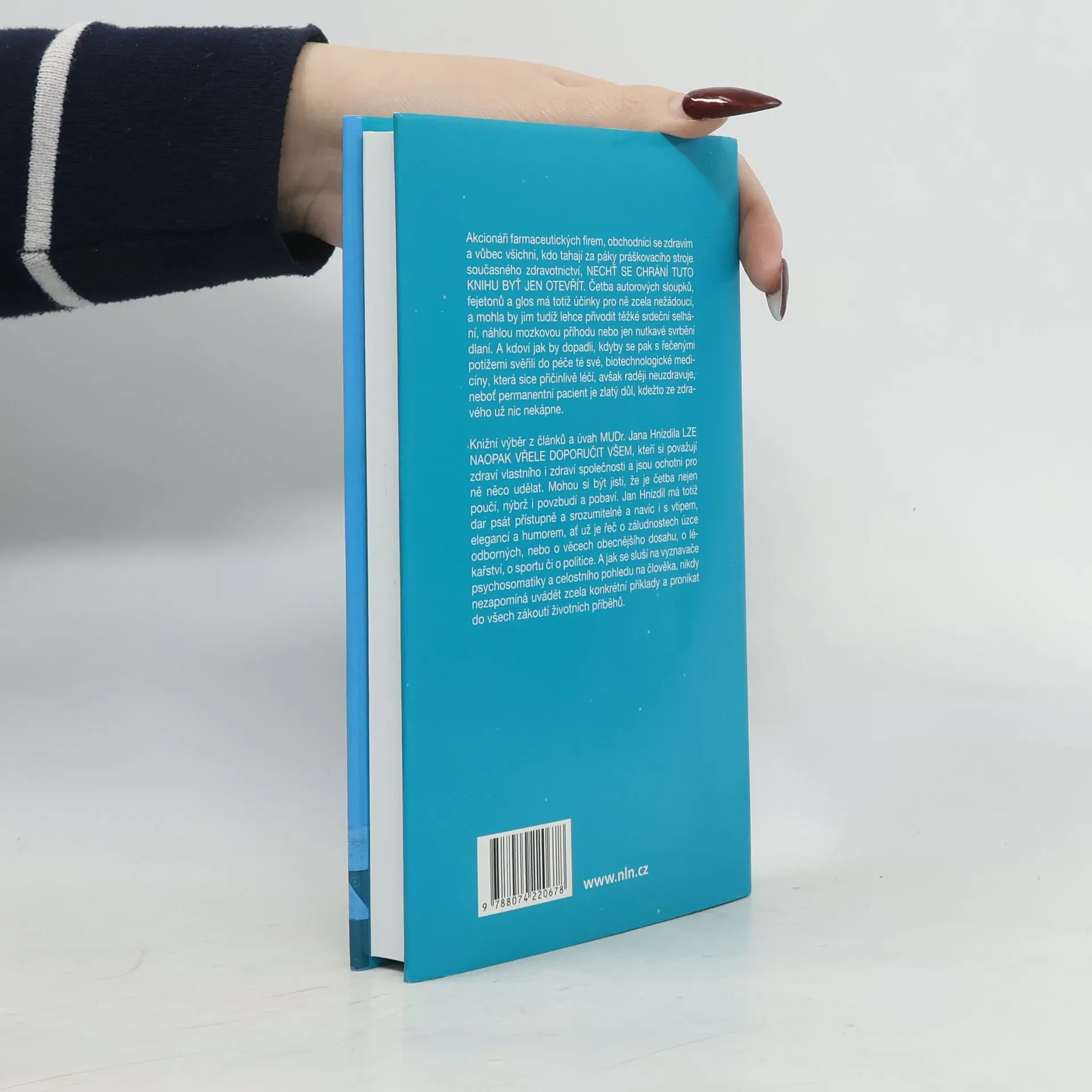Knižní výběr z článků a úvah MUDr. Jana Hnízdila lze vřele doporučit všem, kteří si považují zdraví vlastního i zdraví společnosti a jsou ochotni pro ně něco udělat. Mohou si být jisti, že je četba nejen poučí, nýbrž i povzbudí a pobaví. Jan Hnízdil má totiž dar psát přístupně a srozumitelně a navíc i s vtipem, elegancí a humorem, ať už je řeč o záludnostech úzce odborných, nebo o věcech obecnějšího dosahu, o lékařství, o sportu či o politice. A jak se sluší na vyznavače psychosomatiky a celostního pohledu na člověka, nikdy nezapomíná uvádět zcela konkrétní příklady a pronikat do všech zákoutí životních příběhů.
