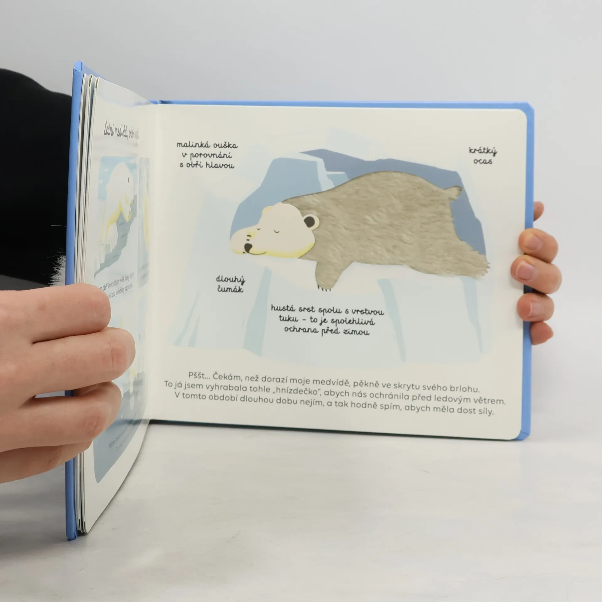 Haptická publikace na kartonových listech seznamuje s vybranými polárními zvířaty.