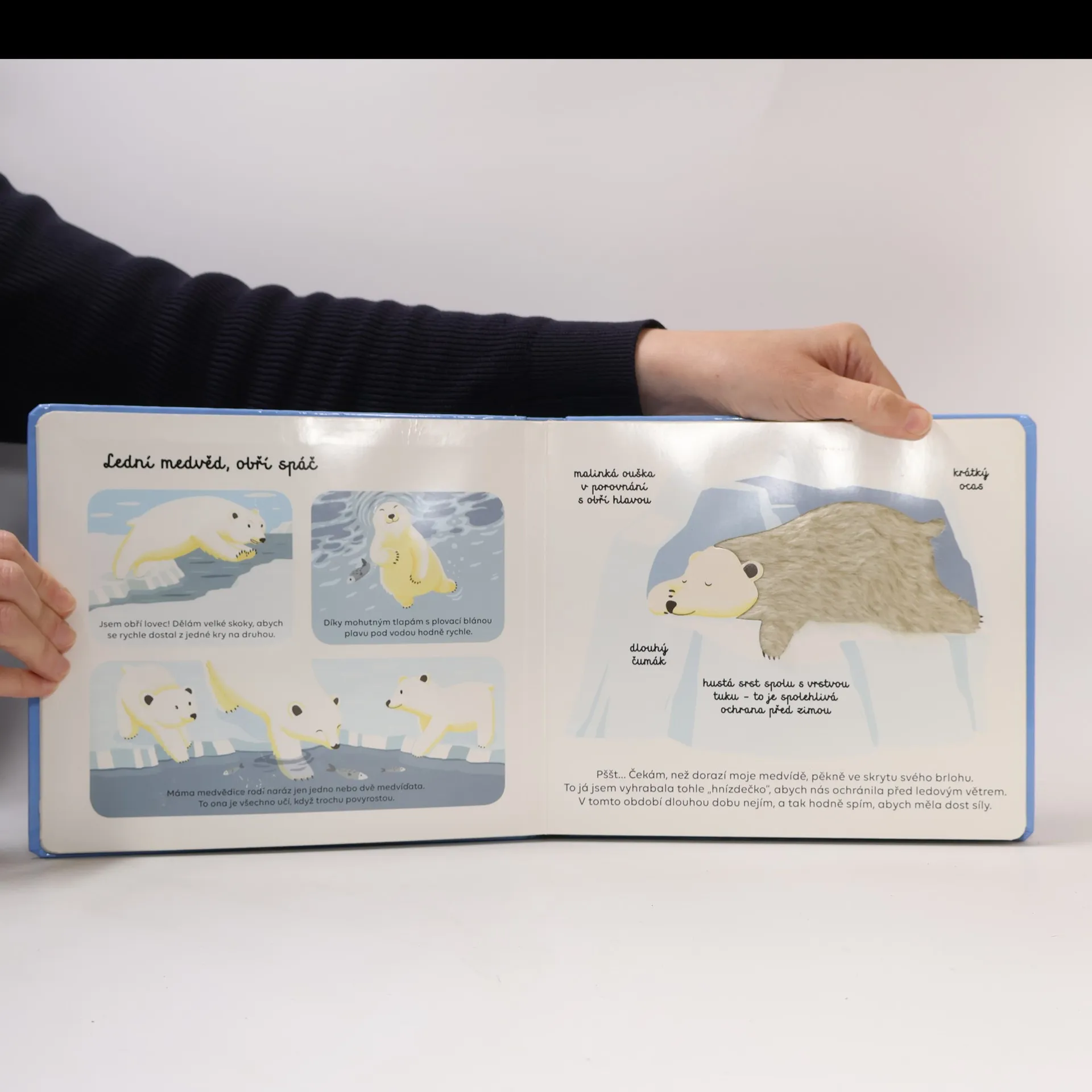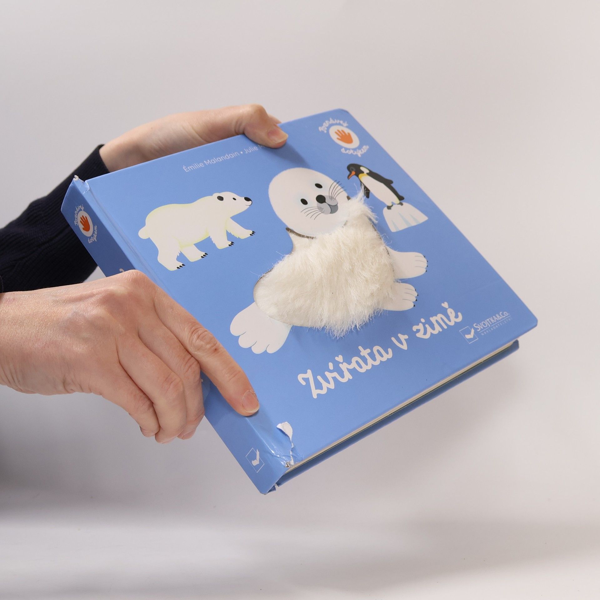 Haptická publikace na kartonových listech seznamuje s vybranými polárními zvířaty.