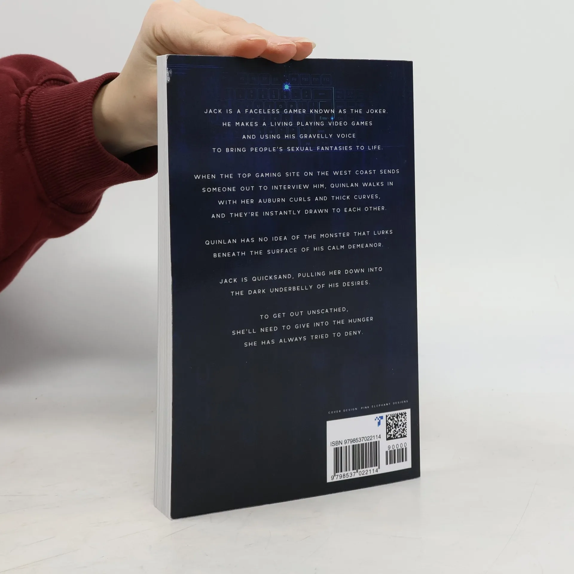 Jack is a faceless gamer known as The Joker. He makes a living playing video games and using his gravelly voice to bring people’s sexual fantasies to life. When the top gaming site on the West Coast sends someone out to interview him, Quinlan walks into his apartment with her auburn curls and thick curves, and they’re instantly drawn to each other. Quinlan has no idea of the monster that lurks beneath the surface of his calm demeanor. Jack is quicksand, pulling her down into the dark underbelly of his desires. To get out unscathed, she’ll need to give in to the hunger she has always tried to deny.