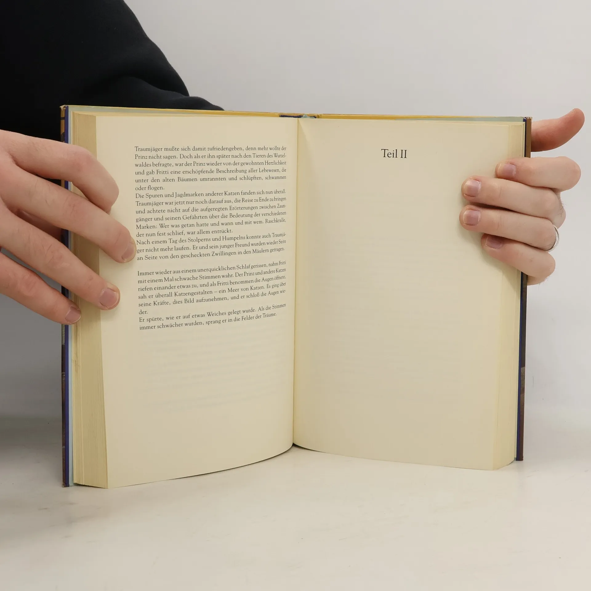Fritti Traumjäger ist ein rötlich-grauer, tapferer, kluger und treuer Kater, voller Freiheitsliebe und tiefer Träume. Er lebt mit seinem Volk in einer Welt, die von mächtigen Katzengöttern und den \"Großen\" beherrscht wird, jenen sonderbaren, pelzlosen Wesen, die man Menschen nennt. Die Welt indes ist nach dem Mythos der Katzen von der Urmutter Tiefklar geschaffen, die das Dunkel verbannte und Die Zwei erschuf: Harar Goldauge und Fela Himmeltanz. Von ihren drei Erstgeborenen hat sich der heimtückische Griraz Kaltherz nach einer Übeltat in das Innere der Erde geflüchtet, wo er auf Rache sinnt und seine Rückkehr ans Licht plant. Furcht und Zorn herrschen in Fritti Traumjägers Volk, denn immer mehr Katzen verschwinden auf geheimnisvolle Weise und werden nicht mehr gesehen. Als schließlich auch noch Frittis Freundin Goldpfote verschwindet, beschließt Fritti zu handeln. Zusammen mit seinem Gefährten Raschkralle und dem exzentrischen, alten Kater Grillenfänger verläßt er seine Heimat und begibt sich auf die Suche nach Goldpfote. Es wird eine Fahrt voller Gefahren und Verzauberungen. Sie bringt ihn und seine Gefährten an den Rand des Todes und führt sie bis in die Katzenhölle. Als er seine Freundin schließlich findet, glaubt er sich am Ziel seiner Wünsche ... --amazon.de