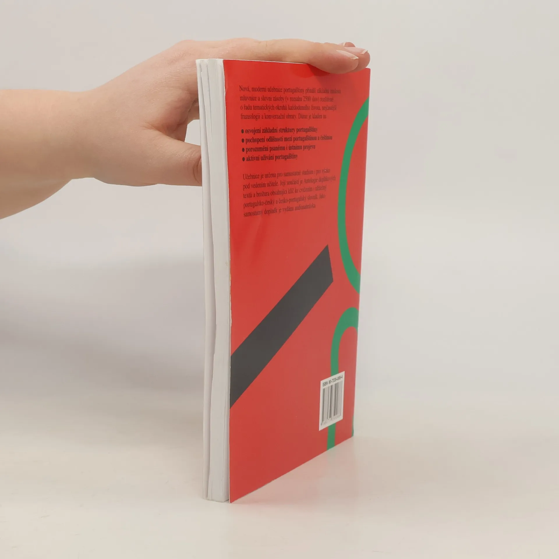 Učebnici určenou jak pro samostatné studium, tak pro výuku pod vedením učitele, tvoří 31 lekcí plus lekce úvodní se zásadami výslovnosti. Je zaměřena na evropskou portugalštinu a hlavními odlišnostmi portugalštiny brazilské se zabývá pouze ve dvou závěrečných lekcích. Každá lekce se skládá z úvodních textů, slovníčku k lekci (základního a doplňkového), mluvnického výkladu a řady cvičení s klíčem. Do učebnice je začleněna též Antologie doplňkových textů. Studující mají k dispozici portugalsko-český slovník, který obsahuje základní slovní zásobu učebnice (2 500 slov), i slovník česko-portugalský (stejného rozsahu).