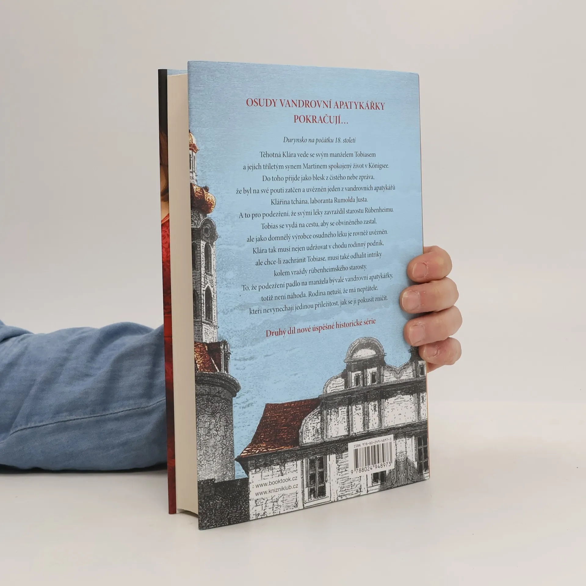 Durynsko na počátku 18. století. Těhotná Klára vede se svým manželem Tobiasem a jejich tříletým synem Martinem spokojený život v Königsee. Náhle se dozví, že byl na své cestě zatčen a uvězněn jeden z vandrovních apatykářů jejího tchána, laboranta Rumolda Justa, kvůli podezření, že svými léky zavraždil starostu Rübenheimu. Jako domnělý výrobce osudného léku je uvězněn i Tobias. Klára tak musí nejen udržovat v chodu rodinný podnik, ale chce-li zachránit Tobiase, rovněž odhalit intriky kolem vraždy rübenheimského starosty… Druhý díl úspěšné historické série.