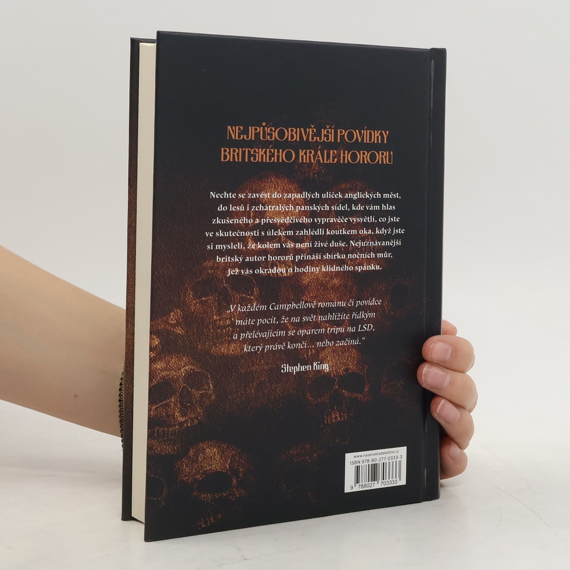 Průřez padesáti lety literárních nočních můr, tedy povídkovým dílem jednoho z nejvýznamnějších současných autorů hororu, pro něž nejsou typické hektolitry krve, kvílení duchů ani hladová monstra.Autorovou doménou je naopak městská i venkovská paranoia, neklid a tíseň, rozklížené vztahy, děsivost cizích míst a neznámých lidí, hrůza každodennosti, nespolehlivost smyslů. Z povídek z let 1964 až 2012, které autor sám vybral pro toto reprezentativní české vydání, dýchá mrazivost moderního života. Díky pronikavému pozorovacímu talentu a schopnosti detekovat děsivé prvky v těch nejbanálnějších situacích se Campbell stal hlasem tiché hrůzy konce dvacátého století, velmistrem žánru, laureátem snad všech hororových ocenění a britskou žánrovou ikonou, o níž však český čtenář dosud z nějakého záhadného důvodu příliš neví.Nechte se odvést do zapadlých uliček anglických měst, do lesů i zchátralých panských sídel, kde vám hlas zkušeného a přesvědčivého vypravěče vysvětlí, co jste ve skutečnosti s úlekem zahlédli koutkem oka, když jste si mysleli, že kolem vás není živé duše.