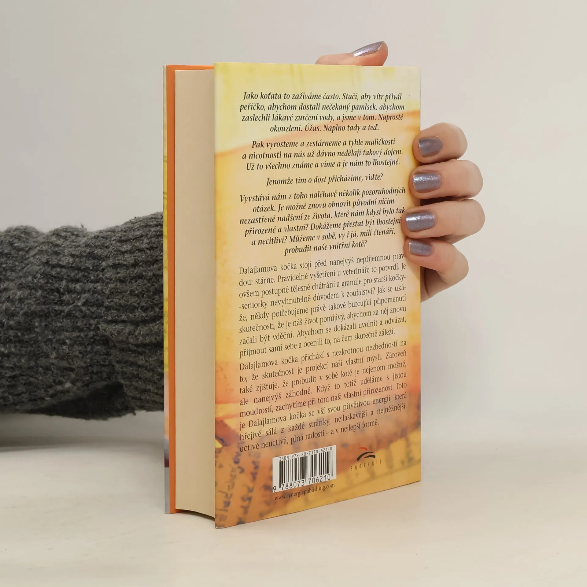 Jako koťata to zažíváme často. Stačí, aby vítr přivál peříčko, abychom dostali nečekaný pamlsek, abychom zaslechli lákavé zurčení vody, a jsme v tom. Naprosté okouzlení. Úžas. Naplno tady a teď. Pak vyrosteme a zestárneme a tyhle maličkosti a nicotnosti na nás už dávno nedělají takový dojem. Už to všechno známe a víme a je nám to lhostejné. Jenomže tím o dost přicházíme, viďte? Vyvstává nám z toho naléhavě několik pozoruhodných otázek. Je možné znovu obnovit původní ničím nezastřené nadšení ze života, které nám kdysi bylo tak přirozené a vlastní? Dokážeme přestat být lhostejní a necitliví?