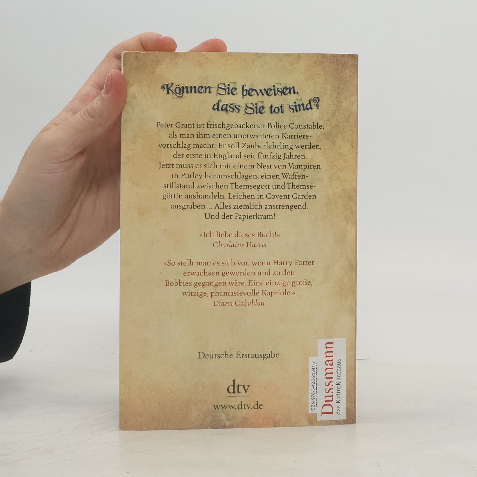 »Können Sie beweisen, dass Sie tot sind?« Peter Grant ist Police Constable in London mit einer ausgeprägten Begabung fürs Magische. Was seinen Vorgesetzten nicht entgeht. Auftritt Thomas Nightingale, Polizeiinspektor und außerdem der letzte Zauberer Englands. Er wird Peter in den Grundlagen der Magie ausbilden. Ein Mord in Covent Garden führt den frischgebackenen Zauberlehrling Peter auf die Spur eines Schauspielers, der vor 200 Jahren an dieser Stelle den Tod fand. »Mein Name ist Peter Grant. Ich bin seit Neuestem Police Constable und Zauberlehrling, der erste seit fünfzig Jahren. Mein Leben ist dadurch um einiges komplizierter geworden. Jetzt muss ich mich mit einem Nest von Vampiren in Purley herumschlagen, einen Waffenstillstand zwischen Themsegott und Themsegöttin herbeiführen, Leichen in Covent Garden ausgraben. Ziemlich anstrengend, kann ich Ihnen sagen – und der Papierkram!«