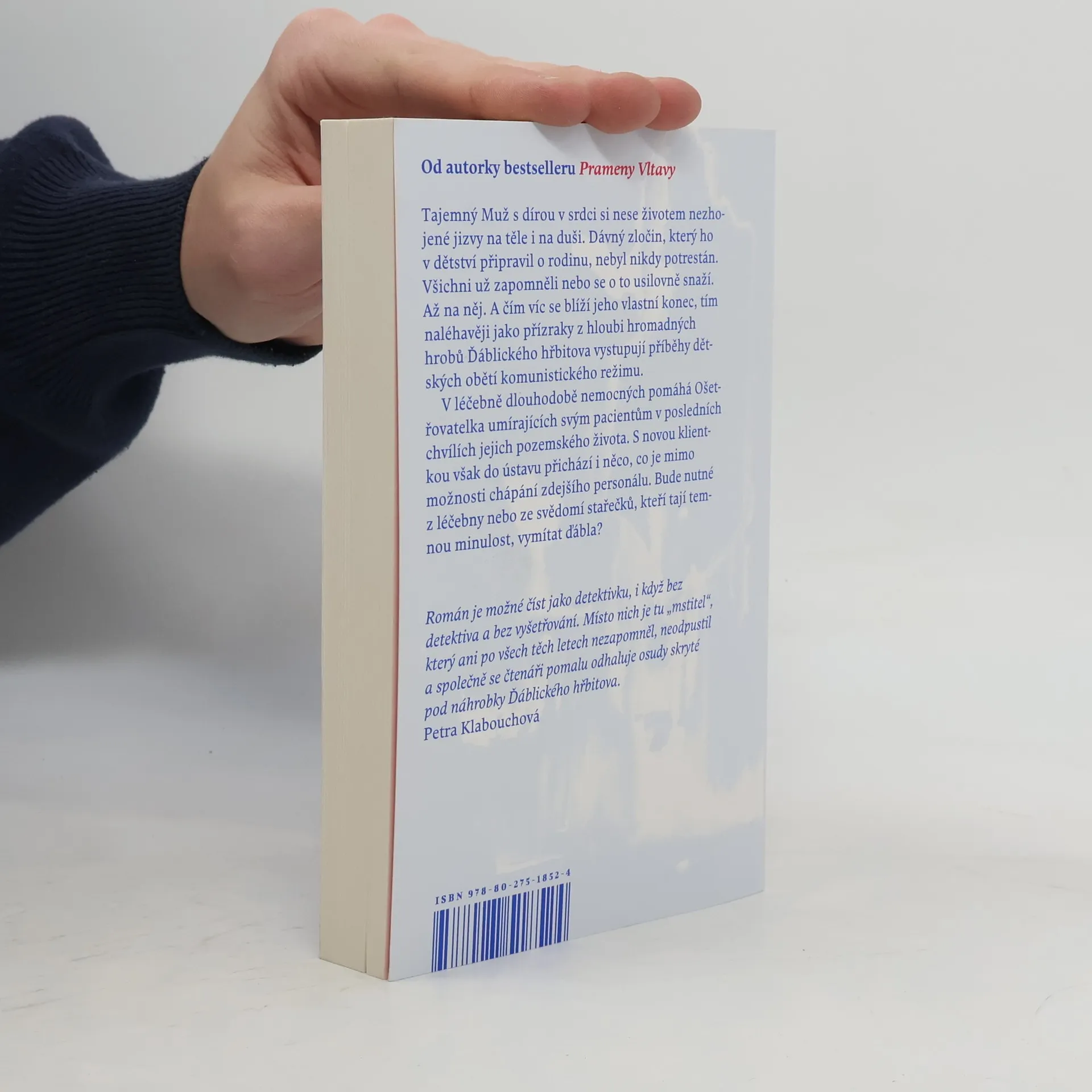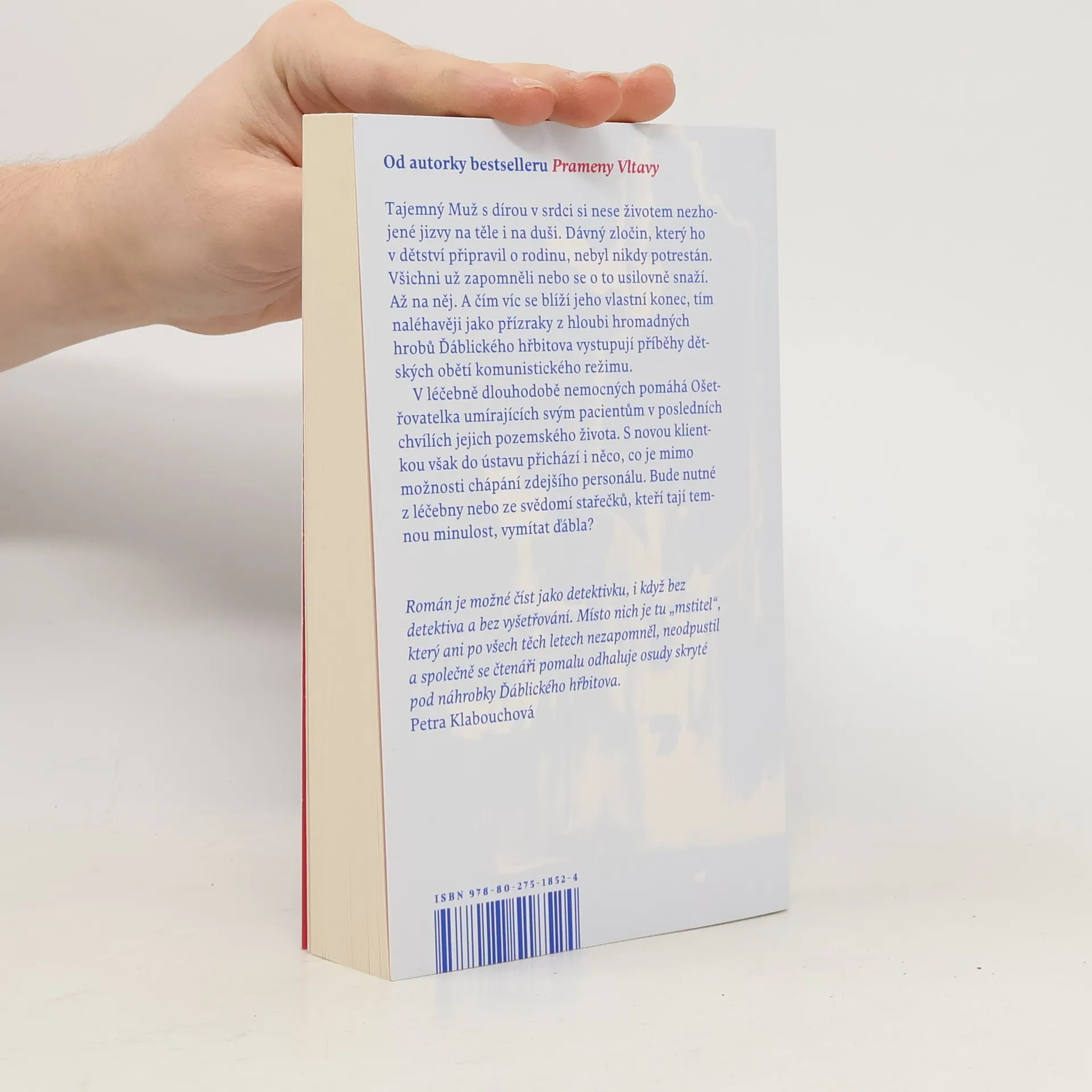 Román o temných pozůstatcích zločinů 50. let, které i po letech chtějí svou daň... Tajemný Muž s dírou v srdci si nese životem nezhojené jizvy na těle i na duši. Dávný zločin, který ho v dětství připravil o rodinu, nebyl nikdy potrestán. Časy se mění, svět kolem však zůstává hluchý, slepý a němý stejně jako kdysi. Všichni už zapomněli nebo se o to usilovně snaží. Až na něj. Spravedlnost se nekoná a tak musí konat on. Čím víc se blíží jeho vlastní konec, tím naléhavěji jako přízraky z hloubi hromadných hrobů Ďáblického hřbitova vystupují příběhy dětských obětí komunistického režimu. V léčebně dlouhodobě nemocných Ošetřovatelka umírajících pomáhá svým pacientům v posledních chvílích jejich pozemského života. S novou klientkou však do ústavu přichází i něco, co je mimo možnosti chápání zdejšího personálu. Bude nutné z léčebny nebo ze svědomí stařečků, kteří tají temnou minulost, vymítat ďábla? Nakladatelská anotace.