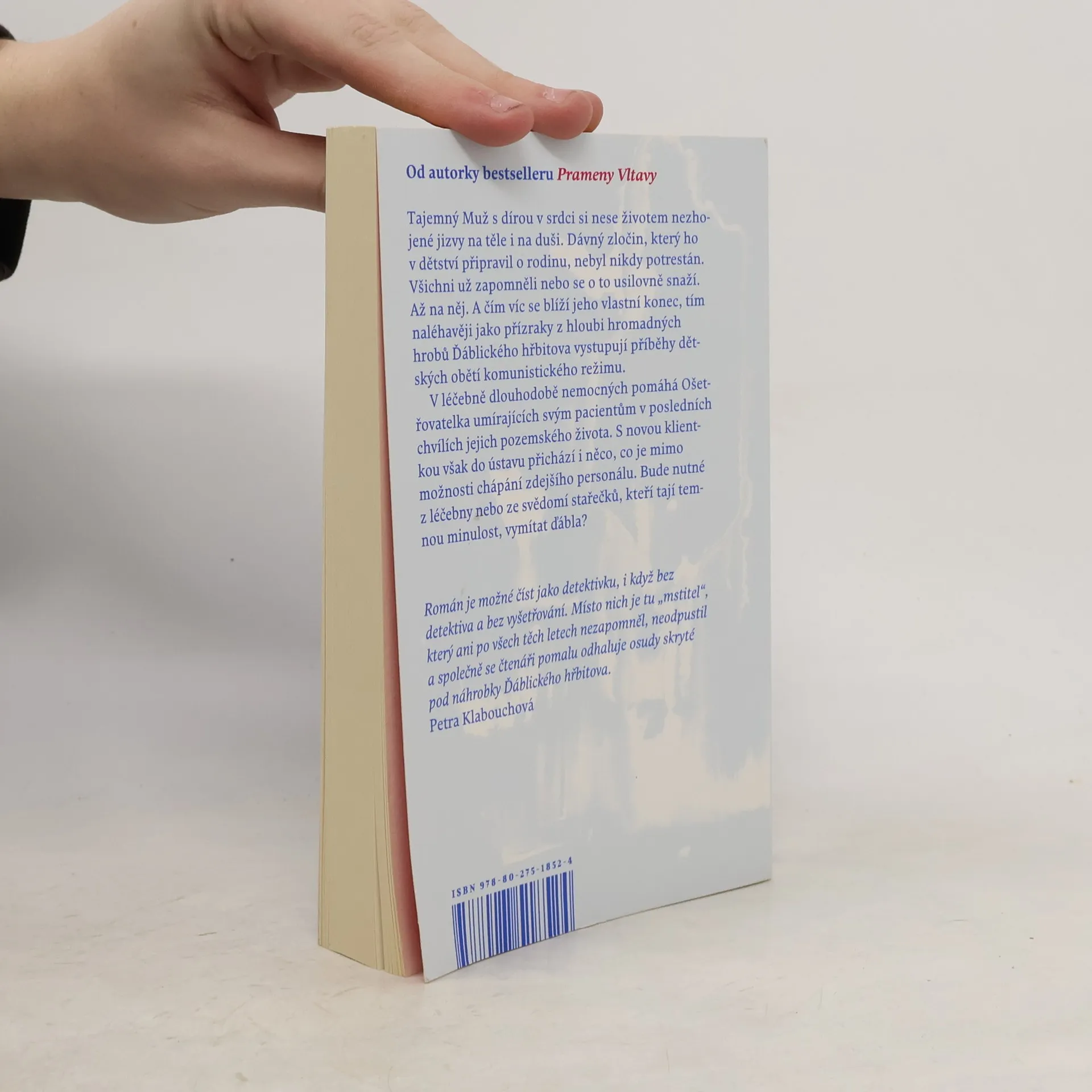 Román o temných pozůstatcích zločinů 50. let, které i po letech chtějí svou daň... Tajemný Muž s dírou v srdci si nese životem nezhojené jizvy na těle i na duši. Dávný zločin, který ho v dětství připravil o rodinu, nebyl nikdy potrestán. Časy se mění, svět kolem však zůstává hluchý, slepý a němý stejně jako kdysi. Všichni už zapomněli nebo se o to usilovně snaží. Až na něj. Spravedlnost se nekoná a tak musí konat on. Čím víc se blíží jeho vlastní konec, tím naléhavěji jako přízraky z hloubi hromadných hrobů Ďáblického hřbitova vystupují příběhy dětských obětí komunistického režimu. V léčebně dlouhodobě nemocných Ošetřovatelka umírajících pomáhá svým pacientům v posledních chvílích jejich pozemského života. S novou klientkou však do ústavu přichází i něco, co je mimo možnosti chápání zdejšího personálu. Bude nutné z léčebny nebo ze svědomí stařečků, kteří tají temnou minulost, vymítat ďábla? Nakladatelská anotace.