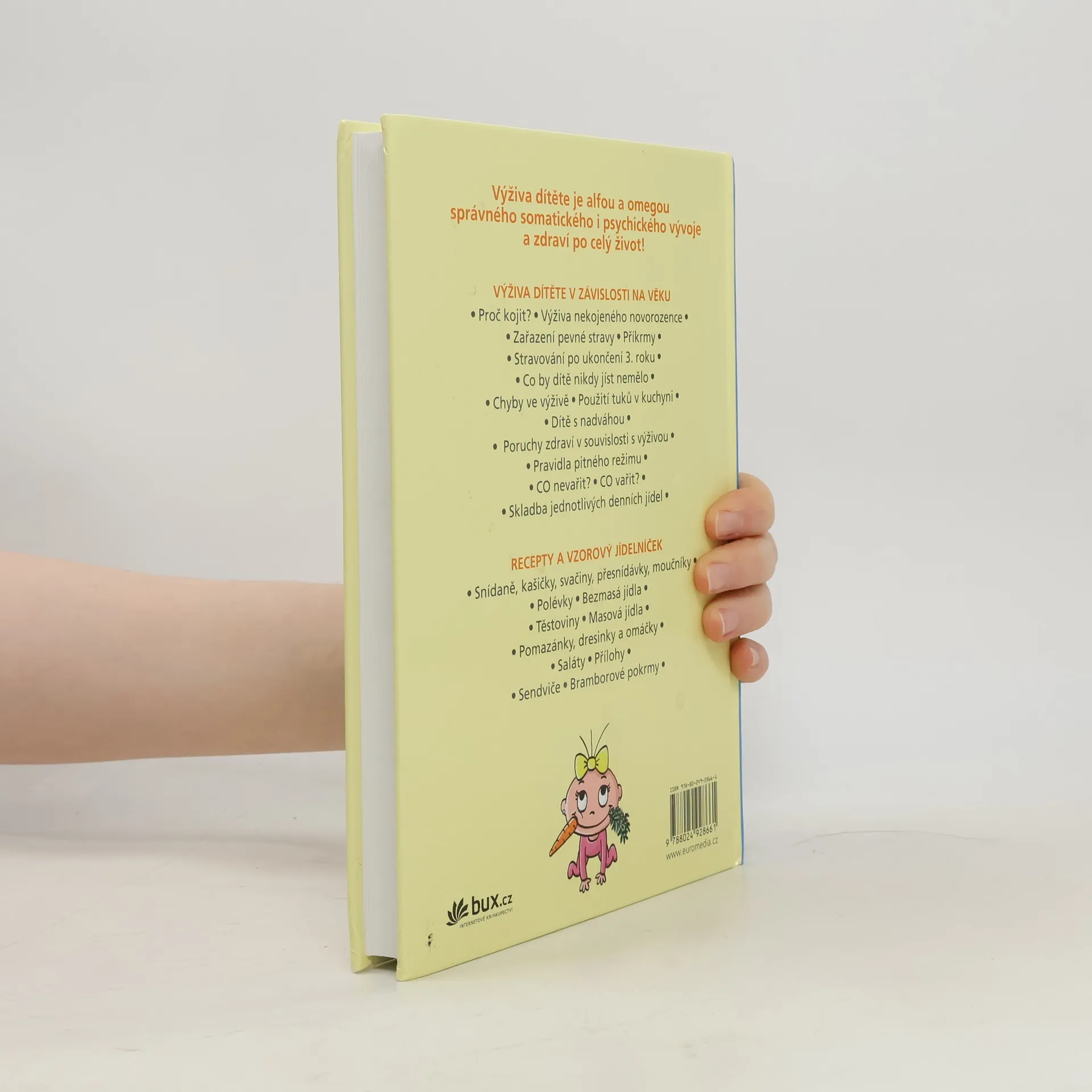 Výživa dítěte je alfou a omegou správného somatického i psychického vývoje a zdraví po celý život! Maminky se seznámí se zásadami zdravé výživy pro naše nejmenší, na doporučení autora se mohou vyhnout všem chybám ve výživě. Důležitou součástí knihy je bohatý receptář a vzorový jídelníček (snídaně, kašičky, svačiny, polévky, bezmasá jídla,…
