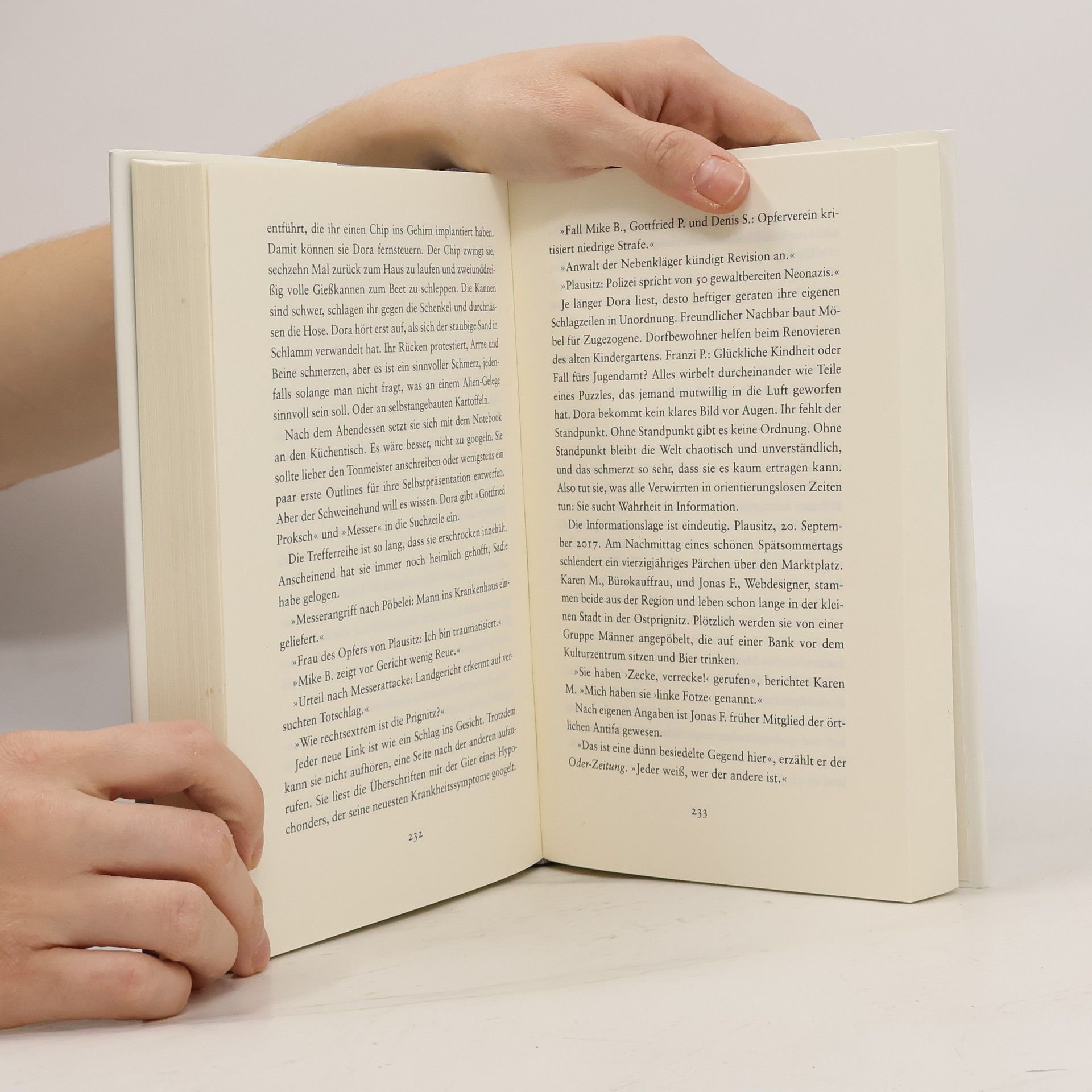 Dora ist mit ihrer kleinen Hündin aufs Land gezogen, um einen Tapetenwechsel und mehr Freiheit zu finden. Doch das kleine Dorf Bracken entpuppt sich als weniger idyllisch als erwartet: Ihr Haus ist unmöbliert, der Garten verwildert, und die Busverbindung zur Stadt ist unzureichend. Hinter der hohen Gartenmauer lebt ein Nachbar, der mit seinem kahlrasierten Kopf und rechten Ansichten sämtlichen Vorurteilen zu entsprechen scheint. Geflohen vor dem Lockdown in der Großstadt, fragt sich Dora, was sie in dieser anarchischen Leere sucht: Abstand von Robert, ihrem Freund, dessen verbissener Klimaaktivismus sie entfremdet? Zuflucht vor der inneren Unruhe, die ihren Schlaf raubt? Oder eine Antwort auf die Frage, wann die Welt so durcheinandergeraten ist? Während sie versucht, ihre Gedanken und Dämonen zu bändigen, geschehen in ihrer Nähe unerwartete Dinge. Menschen, die nicht in ihr bisheriges Weltbild passen, stellen ihre Vorstellungen massiv in Frage und zeigen ihr, dass sie etwas sucht, von dem sie nie gedacht hätte, dass es ihr fehlt. Der Roman erzählt von unserer Gegenwart, unseren Schwächen und Ängsten, und beleuchtet die Stärken, die zum Vorschein kommen, wenn wir den Mut haben, menschlich zu sein.