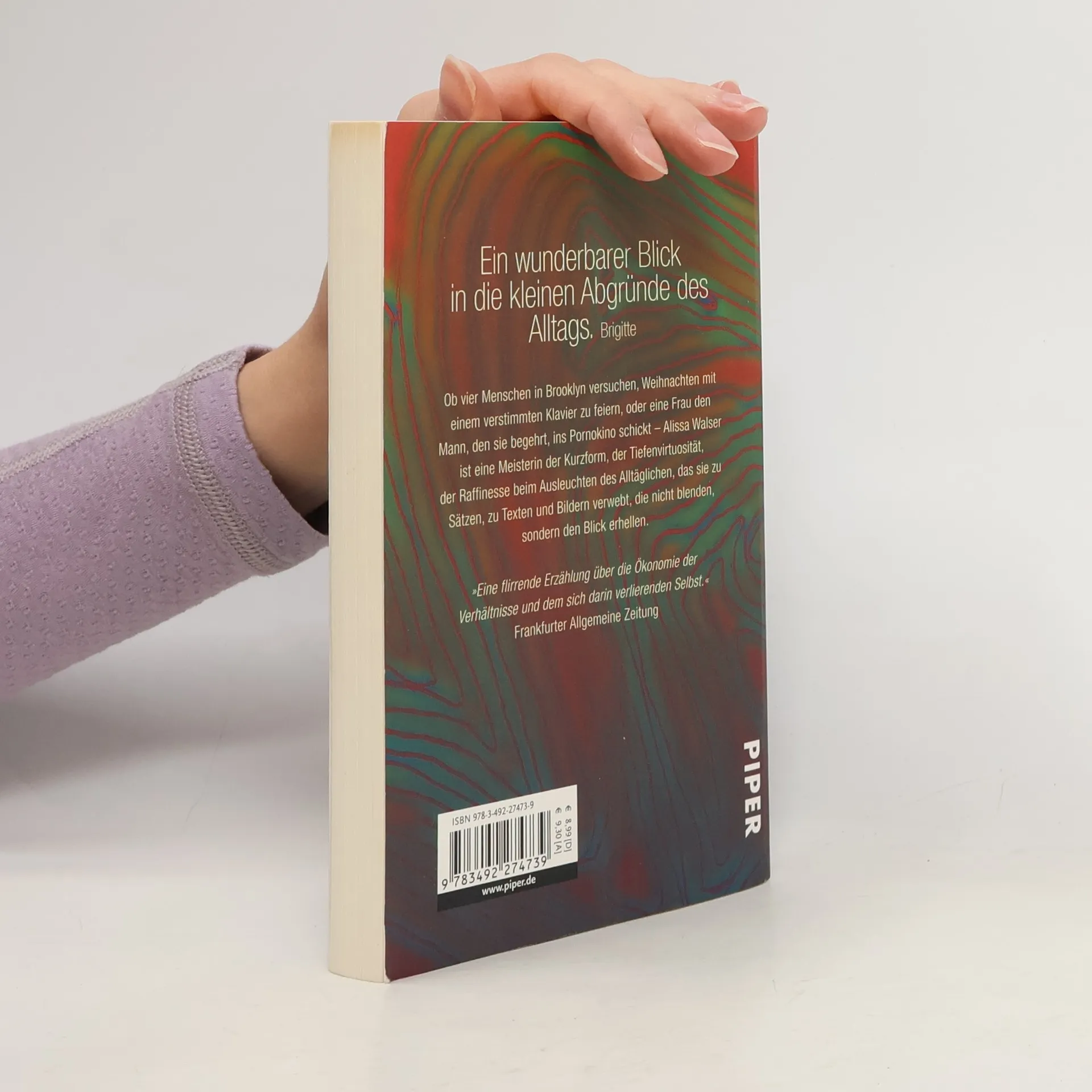 Ob vier Menschen in Brooklyn versuchen, Weihnachten mit einem verstimmten Klavier zu feiern, oder eine Frau den Mann, den sie begehrt, ins Pornokino schickt – Alissa Walser ist eine Meisterin der Kurzform, der Tiefenvirtuosität, der Raffinesse beim Ausleuchten des Alltäglichen, das sie zu Sätzen, zu Texten und Bildern verwebt, die nicht blenden, sondern den Blick erhellen.
