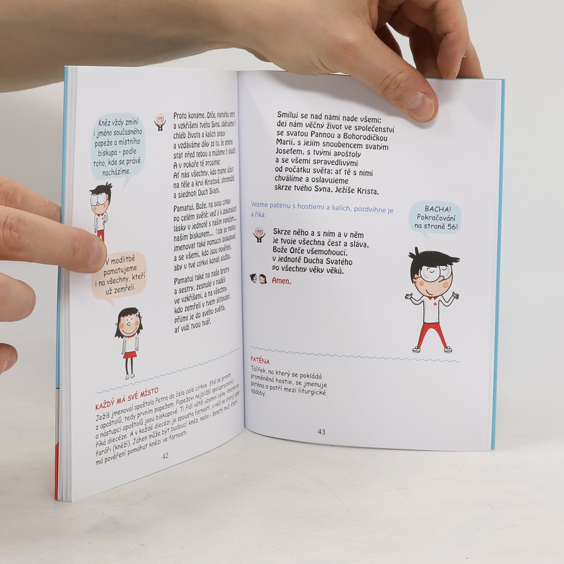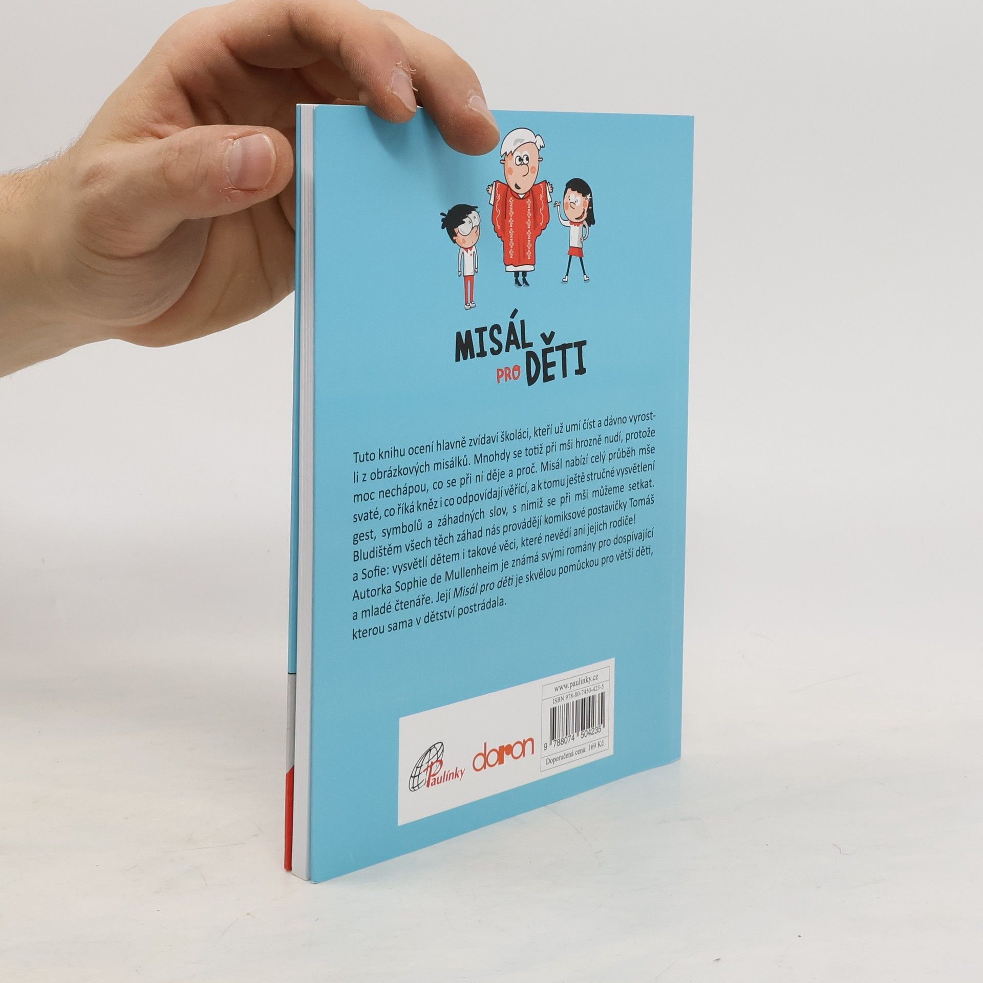 Misál pro děti ocení hlavně zvídaví školáci, kteří už umí číst a dávno vyrostli z obrázkových misálků. Mnohdy se totiž při mši hrozně nudí, protože moc nechápou, co se při ní děje a proč. Misál nabízí celý průběh mše svaté, co říká kněz i co odpovídají věřící, a k tomu ještě stručné vysvětlení gest, symbolů a záhadných slov, s nimiž se při mši můžeme setkat. Bludištěm všech těch záhad nás provádějí komiksové postavičky Tomáš a Sofie: vysvětlí dětem i takové věci, které nevědí ani jejich rodiče!