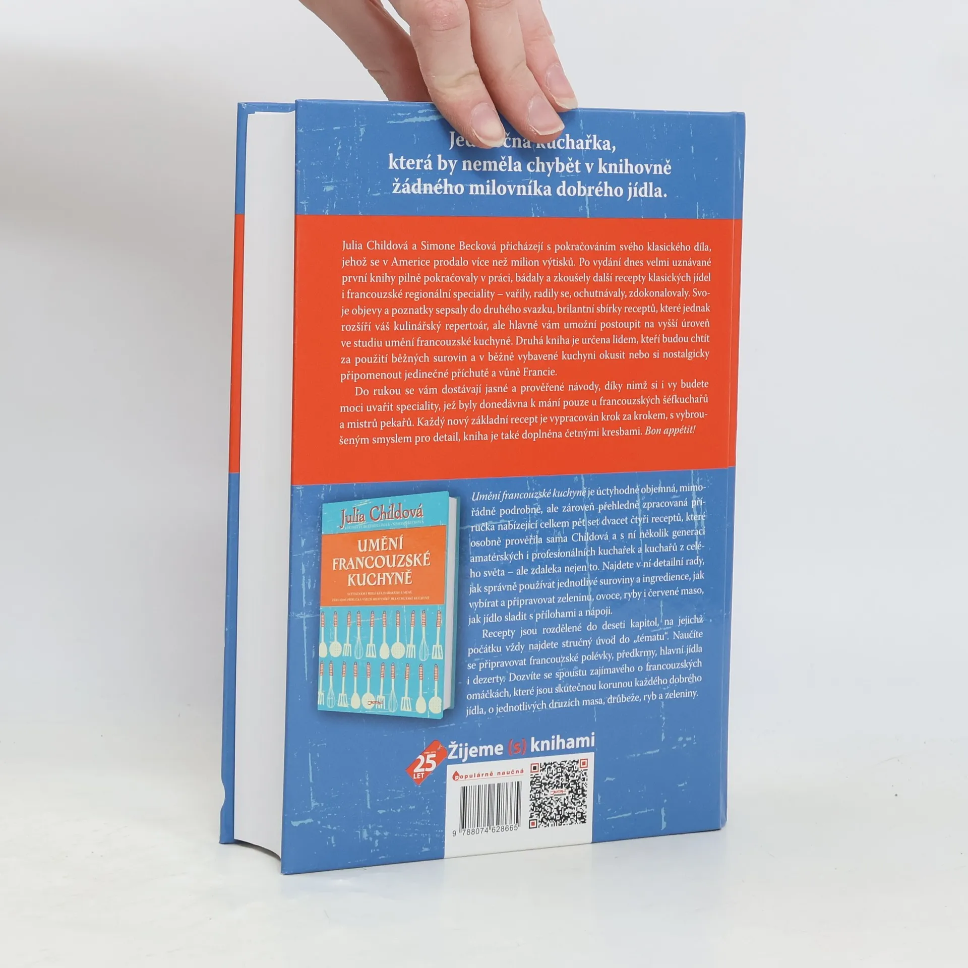 Julia Childová a Simone Becková přicházejí s pokračováním svého klasického díla, které v Americe prodalo více než milion výtisků. Po úspěchu první knihy se věnovaly dalším receptům klasických jídel a francouzských regionálních specialit. Svoje objevy sepsaly do druhého svazku, brilantní sbírky receptů, která rozšíří váš kulinářský repertoár a posune vás na vyšší úroveň ve studiu umění francouzské kuchyně. Tato kniha je určena těm, kteří chtějí za použití běžných surovin a v obyčejně vybavené kuchyni okusit jedinečné příchutě a vůně Francie, jako je oběd v provensálské hospůdce nebo večer v pařížské restauraci. Naleznete zde: • autentický recept na výrobu francouzského chleba, • polévky, včetně rybích a bisque, • masitá jídla od venkovské kuchyně po haute cuisine, • třináct receptů na pošírované kuře s omáčkou, • lákavé zeleninové pokrmy, • dezerty od jednoduchých po velkolepé. Kniha obsahuje jasné a prověřené návody, které vám umožní připravit speciality, jež byly dříve dostupné pouze u francouzských šéfkuchařů. Každý recept je podrobně zpracován krok za krokem a doplněn četnými kresbami.