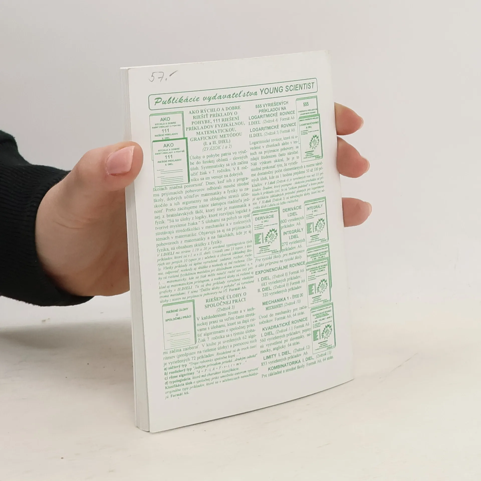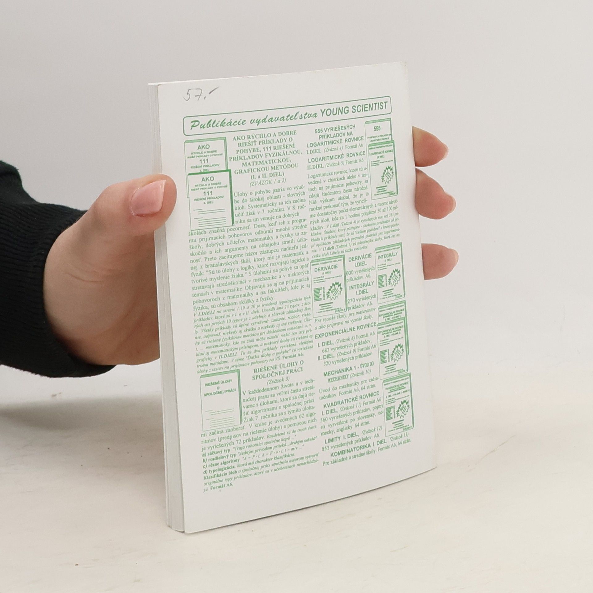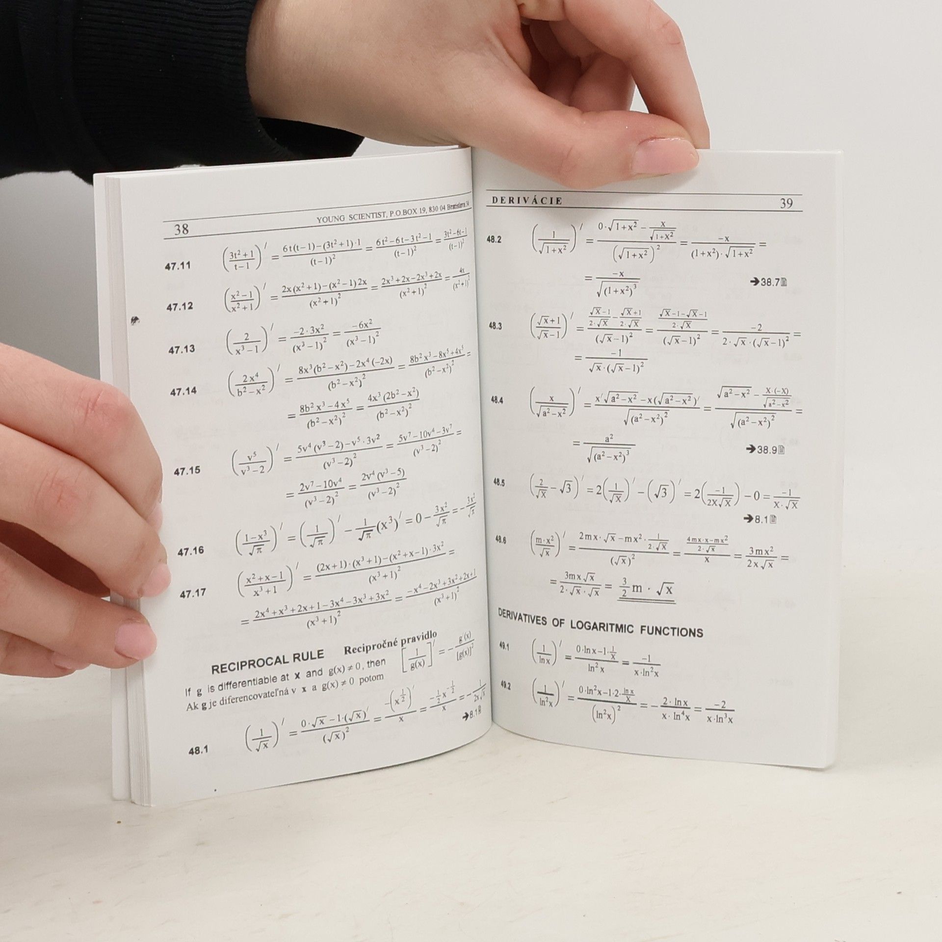 Zbierka vyriešených príkladov. Kniha obsahuje 600 vyriešených príkladov, kde sa precvičujú základné pravidlá derivovania elementárnych funkcií.