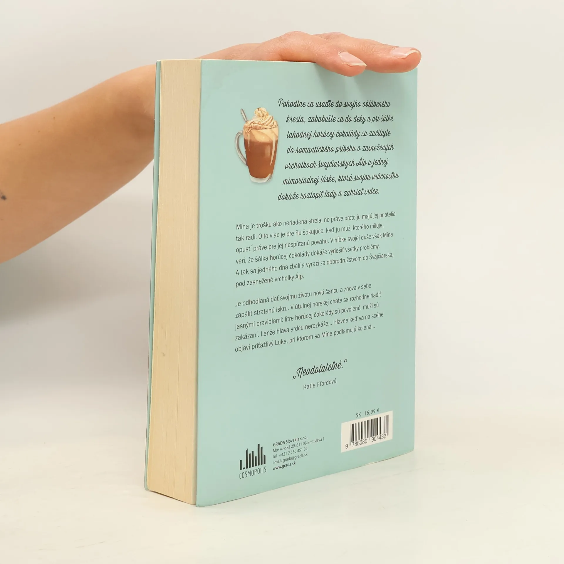 Pohodlne sa usaďte do svojho obľúbeného kresla, zababušte sa do deky a pri šálke lahodnej horúcej čokolády sa začítajte do romantického príbehu o zasnežených vrcholkoch švajčiarskych Álp a jednej mimoriadnej láske, ktorá svojou vrúcnosťou dokáže roztopiť ľady a zahriať srdce. Mína je trošku ako neriadená strela, no práve preto ju majú jej priatelia tak radi. O to viac je pre ňu šokujúce, keď ju muž, ktorého miluje, opustí práve pre jej nespútanú povahu. V hĺbke svojej duše však Mína verí, že šálka horúcej čokolády dokáže vyriešiť všetky problémy. A tak sa jedného dňa zbalí a vyrazí za dobrodružstvom do Švajčiarska, pod zasnežené vrcholky Álp. Je odhodlaná dať svojmu životu novú šancu a znova v sebe zapáliť stratenú iskru. V útulnej horskej chate sa rozhodne riadiť jasnými pravidlami: litre horúcej čokolády sú povolené, muži sú zakázaní. Lenže hlava srdcu nerozkáže... Hlavne keď sa na scéne objaví príťažlivý Luke, pri ktorom sa Míne podlamujú kolená...