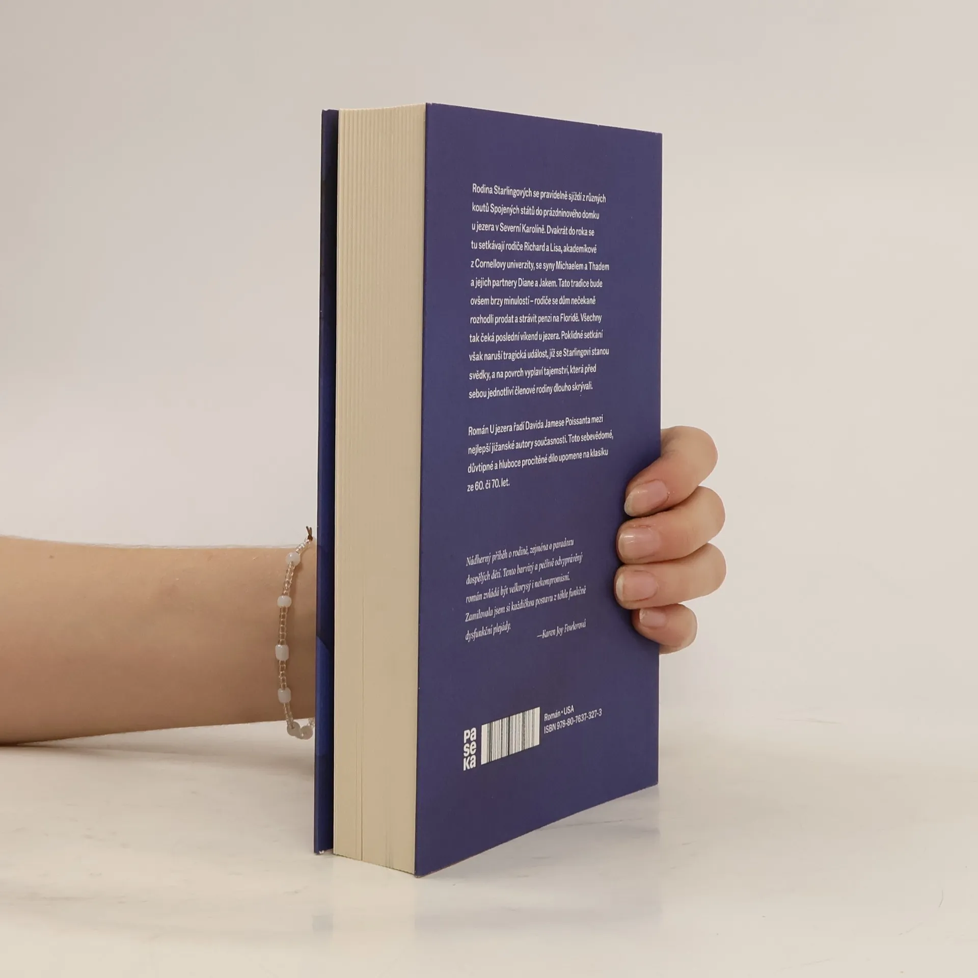 Rodina Starlingových se pravidelně sjíždí z různých koutů Spojených států do prázdninového domku u jezera v Severní Karolíně. Dvakrát do roka se tu setkávají rodiče Richard a Lisa, akademikové z Cornellovy univerzity, se syny Michaelem a Thadem a jejich partnery Diane a Jakem. Tato tradice bude ovšem brzy minulostí – rodiče se dům nečekaně rozhodli prodat a strávit penzi na Floridě. Všechny tak čeká poslední víkend u jezera. Poklidné setkání však naruší tragická událost, jíž se Starlingovi stanou svědky, a na povrch vyplaví tajemství, která před sebou jednotliví členové rodiny dlouho skrývali. Román U jezera řadí Davida Jamese Poissanta mezi nejlepší jižanské autory současnosti. Toto sebevědomé, důvtipné a hluboce procítěné dílo upomene na klasiku ze 60. či 70. let.