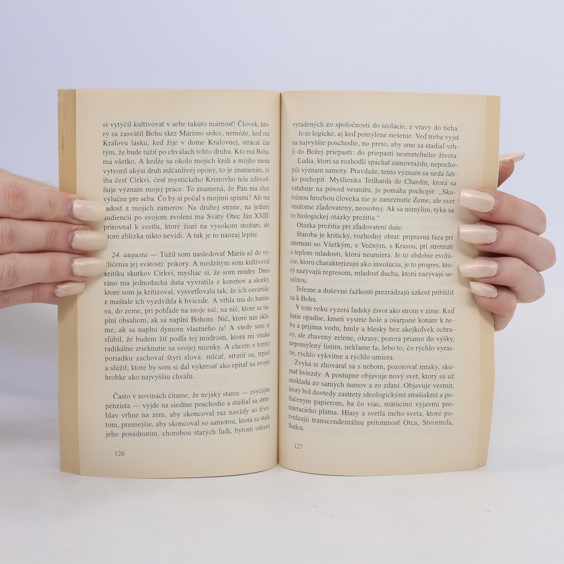 Kniha je denníkom duše a denníkom storočia, v ktorom táto duša žila. Ukazuje, ako žiarivý oheň, ktorý Boh zapaľuje v ľudskej duši, živil, spaľoval a spaľovaním pretváral duchovný život autora. Autor patrí medzi významných kresťanských mysliteľov súčasnosti, je „majstrom medzi talianskymi spisovateľmi". Kniha obsahuje vyznania, meditácie, rozhovory s Bohom a ľudstvom. Do dôverného vzťahu nám priblíži človeka, ktorý ako laik naplno realizoval svoje poslanie.