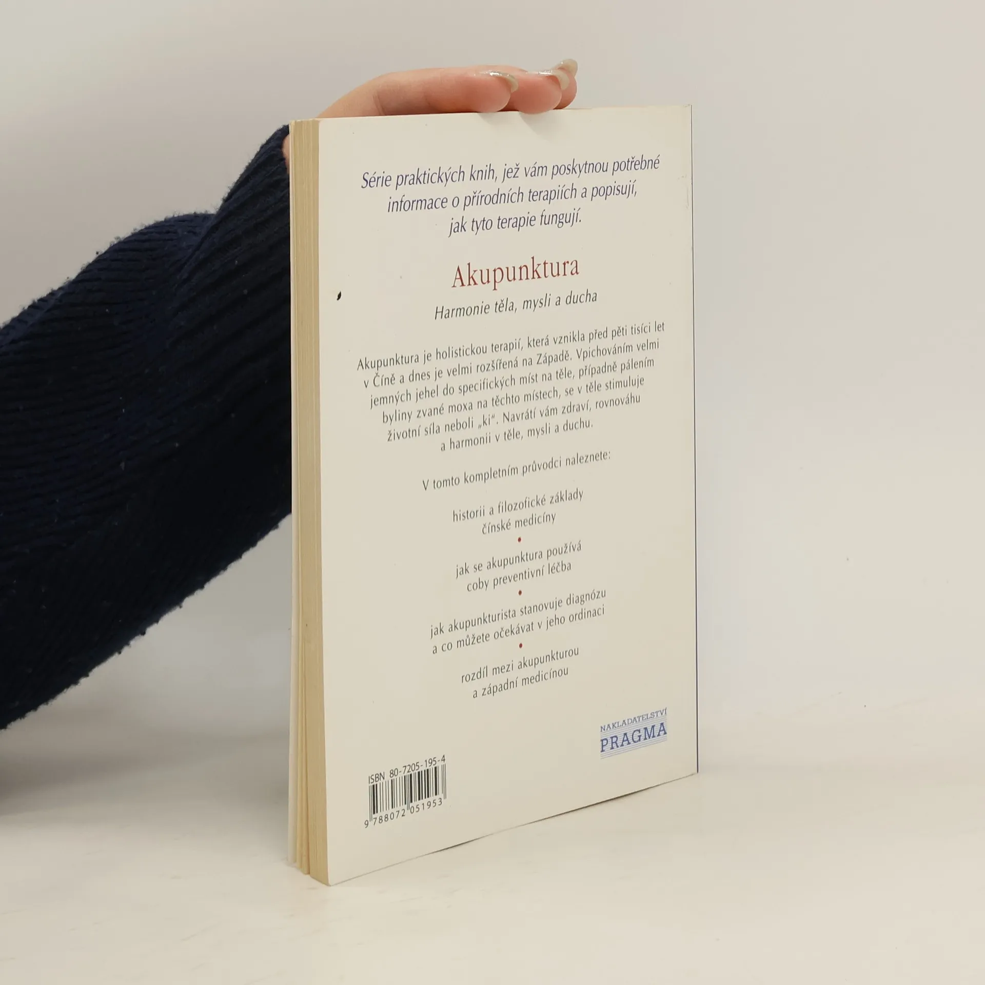 Další ze série praktických knih, jež vám poskytnou potřebné informace o přírodních terapiích a popisují, jak tyto terapie fungují. Akupunktura je holistickou terapií, která vznikla před pěti tisíci let v Číně a dnes je velmi rozšířená na Západě. Vpichováním velmi jemných jehel do specifických míst na těle, případně pálením byliny zvané moxa na těchto místech, se v těle stimuluje životní síla neboli "ki". Navrátí vám zdraví, rovnováhu a harmonii v těle, mysli a duchu. V tomto kompletním průvodci naleznete: - historii a filozofické základy čínské medicíny - jak se akupunktura používá coby preventivní léčba - jak akupunkturista stanovuje diagnózu a co můžete očekávat v jeho ordinaci - rozdíl mezi akupunkturou a západní medicínou