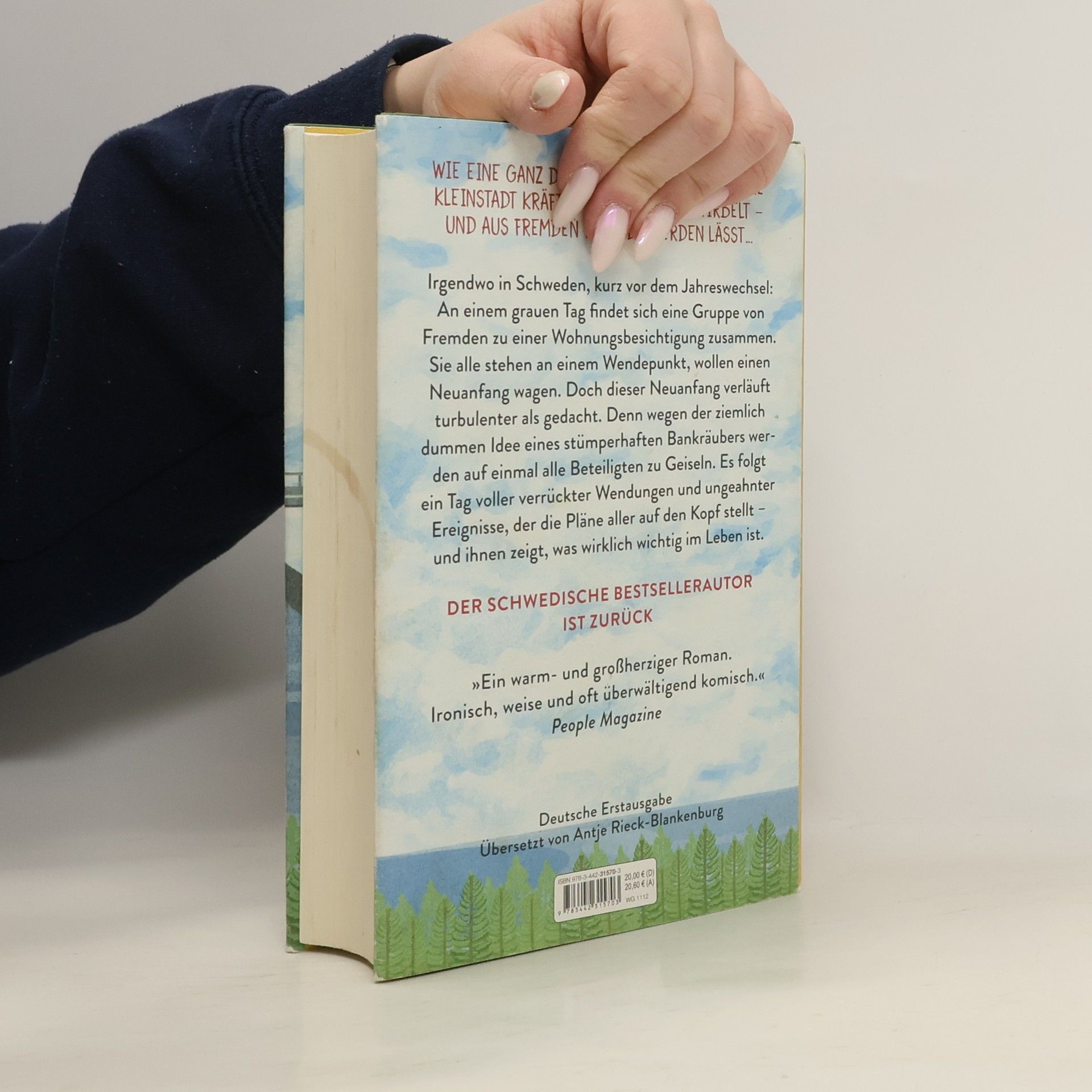 Der große neue Roman des Autors von »Ein Mann namens Ove« Eine Kleinstadt in Schweden, kurz vor dem Jahreswechsel: An einem grauen Tag findet sich eine Gruppe von Fremden zu einer Wohnungsbesichtigung zusammen. Sie alle stehen an einem Wendepunkt, sie alle wollen einen Neuanfang wagen. Doch dieser Neuanfang verläuft turbulenter als gedacht. Denn wegen der ziemlich dummen Idee eines stümperhaften Bankräubers werden auf einmal alle Beteiligt»en zu Geiseln. Auch wenn davon niemand überraschter ist als der Geiselnehmer selbst. Es folgt ein Tag voller verrückter Wendungen und ungeahnter Ereignisse, der die Pläne aller auf den Kopf stellt – und ihnen zeigt, was wirklich wichtig im Leben ist …Jetzt große Netflix-Verfilmung unter dem Titel »Menschen in Angst«.