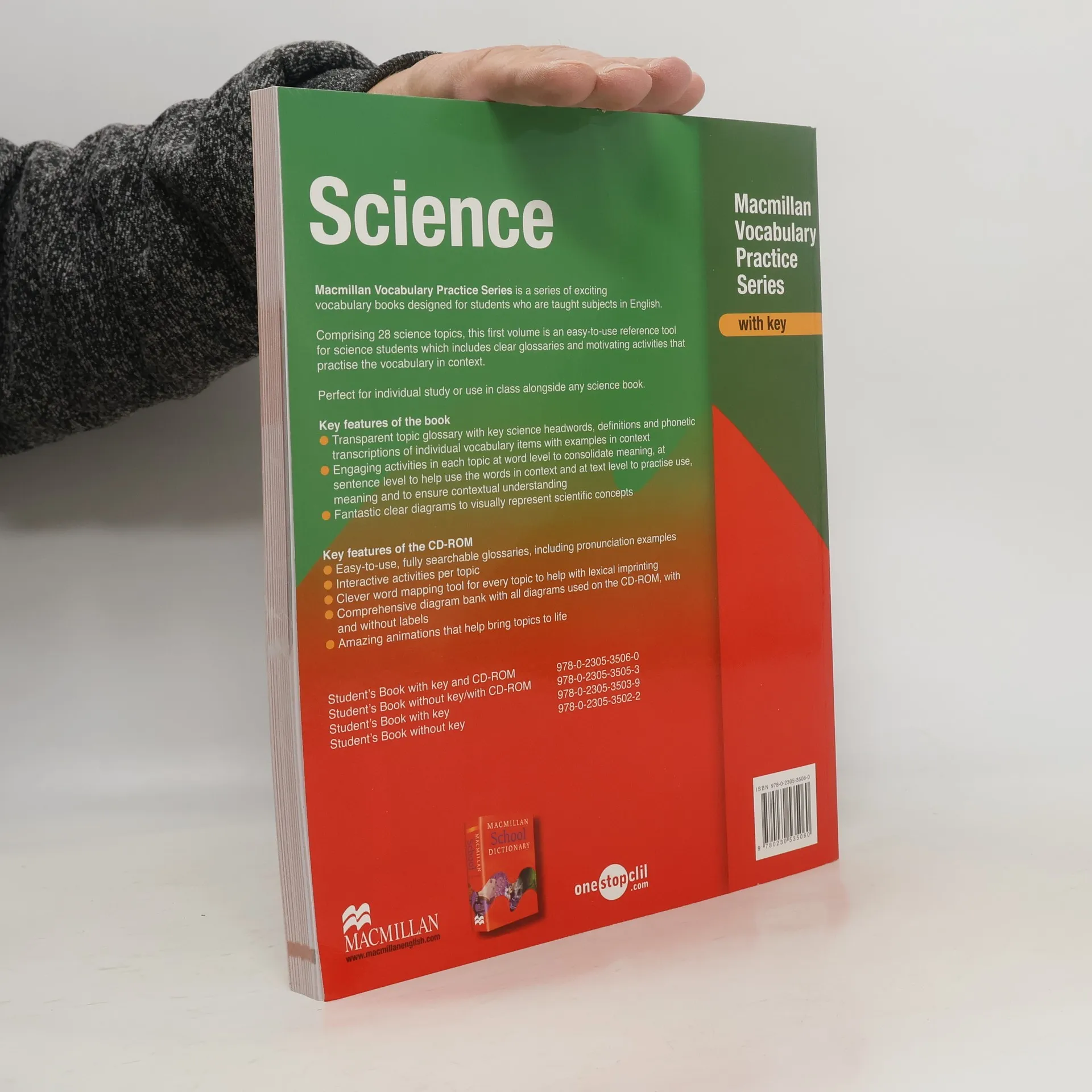 28 Science topicsEasy to use reference toolClear glossaries Motivating activities that practise the vocabulary in context Perfect for individual study or use in class alongside any course or subject specific material.Clear, concise and informative, the Macmillan Vocabulary Practice Series help students to learn subject specific vocabulary by placing it in context.An easy-to-use reference tool, this series of books is the perfect solution for both the subject specialist and the English te