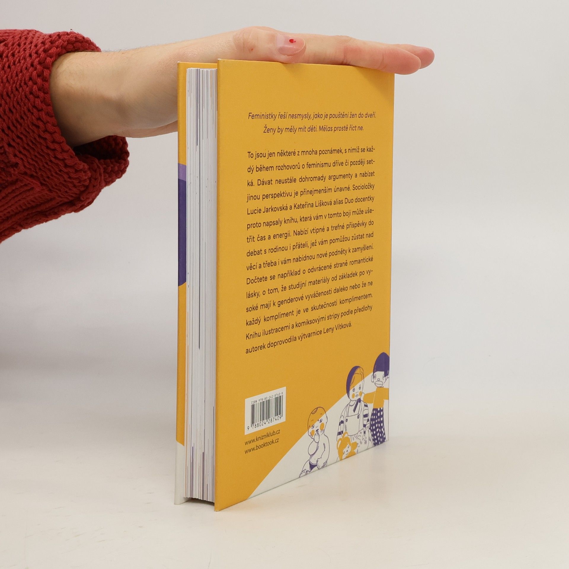 Feministky řeší nesmysly jako je pouštění žen do dveří. Ženy by měly mít děti. Mělas prostě říct ne. To jsou jen některé z mnoha poznámek, s nimiž se každý během rozhovorů o feminismu dříve či později setká. Dávat neustále dohromady argumenty a nabízet jinou perspektivu je přinejmenším únavné. Socioložky Lucie Jarkovská a Kateřina Lišková alias Duo docentky proto napsaly knihu, která vám v tomto boji může ušetřit čas a energii. Nabízí vtipné a trefné příspěvky do debat s rodinou i přáteli, jež vám pomůžou zůstat nad věcí a třeba i vám nabídnou nové podněty k zamyšlení. Dočtete se například o odvrácené straně romantické lásky, o tom, že studijní materiály od základek po vysoké mají k genderové vyváženosti daleko nebo že ne každý kompliment je ve skutečnosti komplimentem. Knihu ilustracemi a komiksovými stripy podle předlohy autorek doprovodila výtvarnice Leny Vítková.