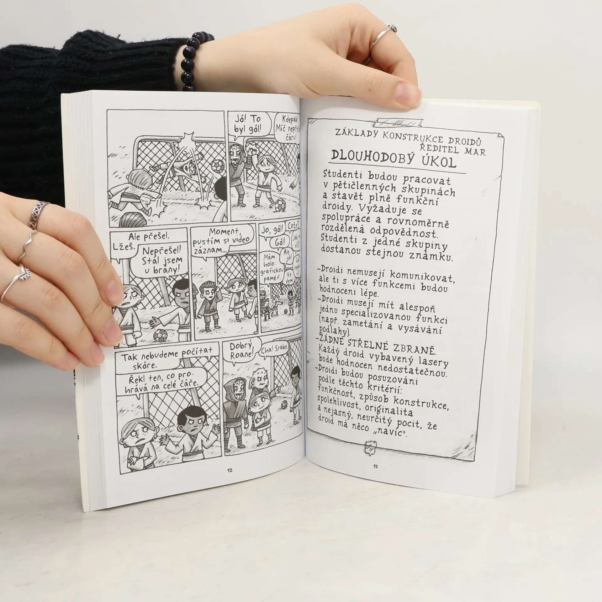 Roan si myslel, že druhý rok na Jediské akademii bude brnkačka a taky byla ze začátku. Sestavil suprového robota, byl na exkurzi na ledové planetě a dařilo se mu vyhýbat Gammyho kuchařským výtvorům. Ale pak se všechno nějak zamotalo! Pilotní výcvik byl těžší, než čekal, přestali s ním mluvit nejlepší kamarádi a třídní grázlové se ho snažili obrátit na temnou stranu – což byla náhodou docela zábava. A on už si myslel, že ví, jak to na akademii chodí