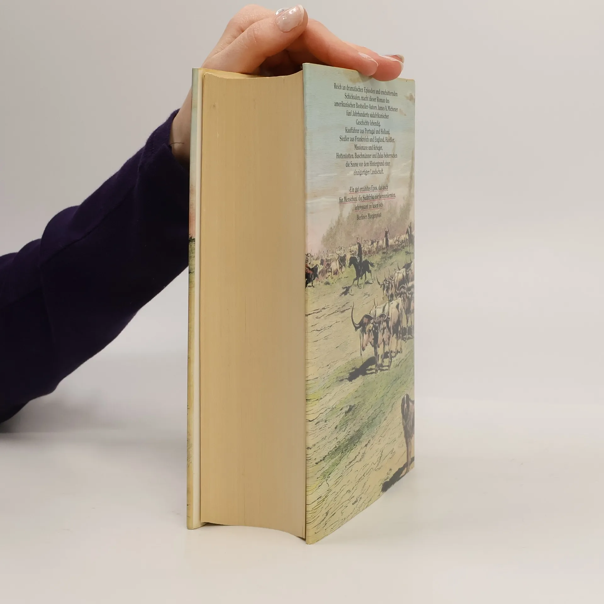 Hier geht es um die atemberaubende Landschaft Südafrikas, die den Hintergrund für das fesselnde Geschehen dieses Romans bildet. Wir begegnen den ersten Kauffahrern aus Portugal und Holland, Siedlern aus Deutschland und England, Hugenotten und Reformierten, Händlern aus Indien, Hottentotten und Buschmännern. Es wird von Goldbergwerken der sagenumworbenen Stadt Zimbabwe, vom einträglichen Handel mit Gewürzen und Sklaven, vom "großen Treck", den Burenkriegen und grausamen Folgen einer schändlichen Rassenpolitik. So verweben sich vor dem Auge des Lesers dieverschiedenen Stränge der Handlung zu einem gigantischen Panorama dieses zugleich faszinierenden und furchtgebietenden Landes und seiner Menschen.