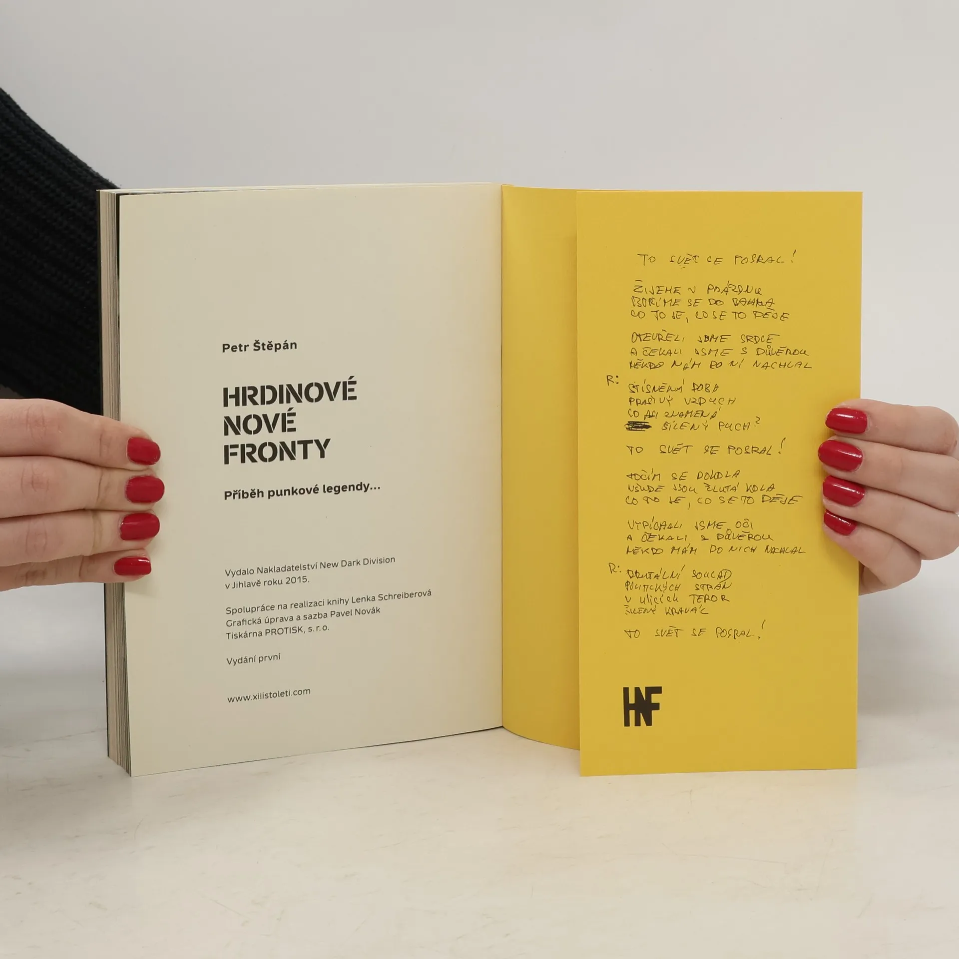 Volnou formou vyprávěný příběh této legendární punkové skupiny jistě osloví nejen její dobové fanoušky, ale i současné mladší příznivce. Petr Štěpán nás nechává nahlédnout do zákulisí událostí, které předcházely vzniku skupiny, přes její vývoj, tvorbu, nahrávky, koncerty, vzestupy a pády až po rozpad a zánik skupiny. Kniha obsahuje množství autorových zážitků a osobních vzpomínek, z nichž drtivá většina je v této knize publikována vůbec poprvé. Čtivou formou tím zároveň předkládá svědectví o životě nejen v punkové komunitě, ale též o době, kultuře a společnosti před pádem komunistického režimu. Naprostým unikátem knihy je komplet všech textů písní HNF, které jsou doplněny množstvím autentických dobových fotografií z celé éry skupiny pořízené v letech 1985 – 1988. Kniha vychází u příležitosti 30.výročí založení skupiny HNF!