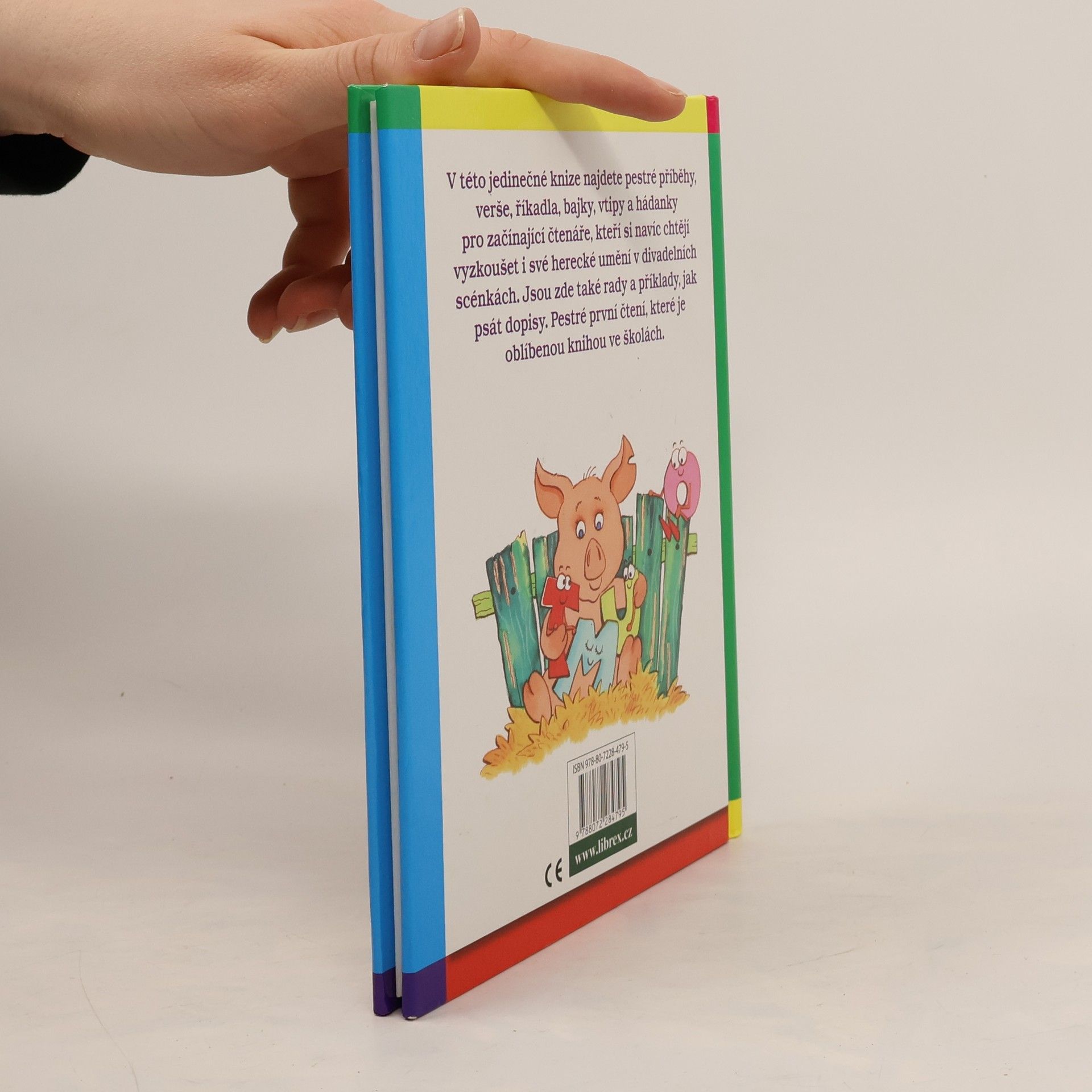 V této jedinečné knize najdete pestré příběhy, verše, říkadla, bajky, vtipy a hádanky pro začínající čtenáře, kteří si navíc chtějí vyzkoušet i své herecké umění v divadelních scénkách. Jsou zde také rady a příklady, jak psát dopisy. Pestré první čtení, které je oblíbenou knihou ve školách.