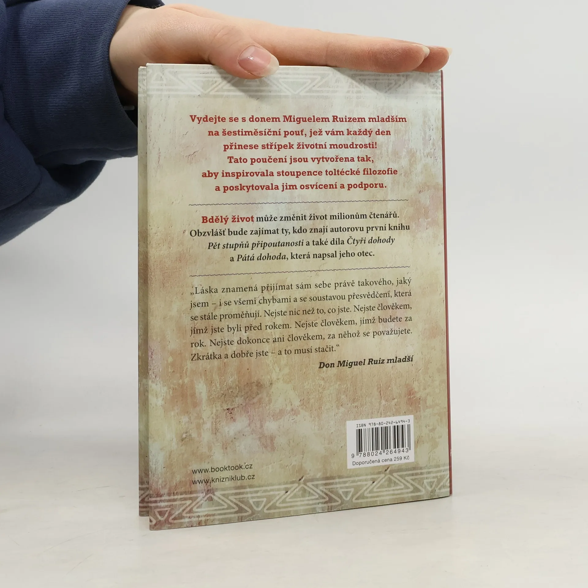 Vůbec poprvé vychází kniha, kde je shrnuta toltécká inspirace rodiny Ruizových. Obzvlášť proto zaujme všechny, kteří znají knihy Čtyři dohody a Pátá dohoda nebo Pět stupňů připoutanosti. Povede nás k hlubšímu pochopení vlastního já i světa, v němž žijeme. Náležitou bdělostí můžeme dosáhnout harmonie, která s sebou přináší osobní svobodu a optimální fyzické a duchovní zdraví.
