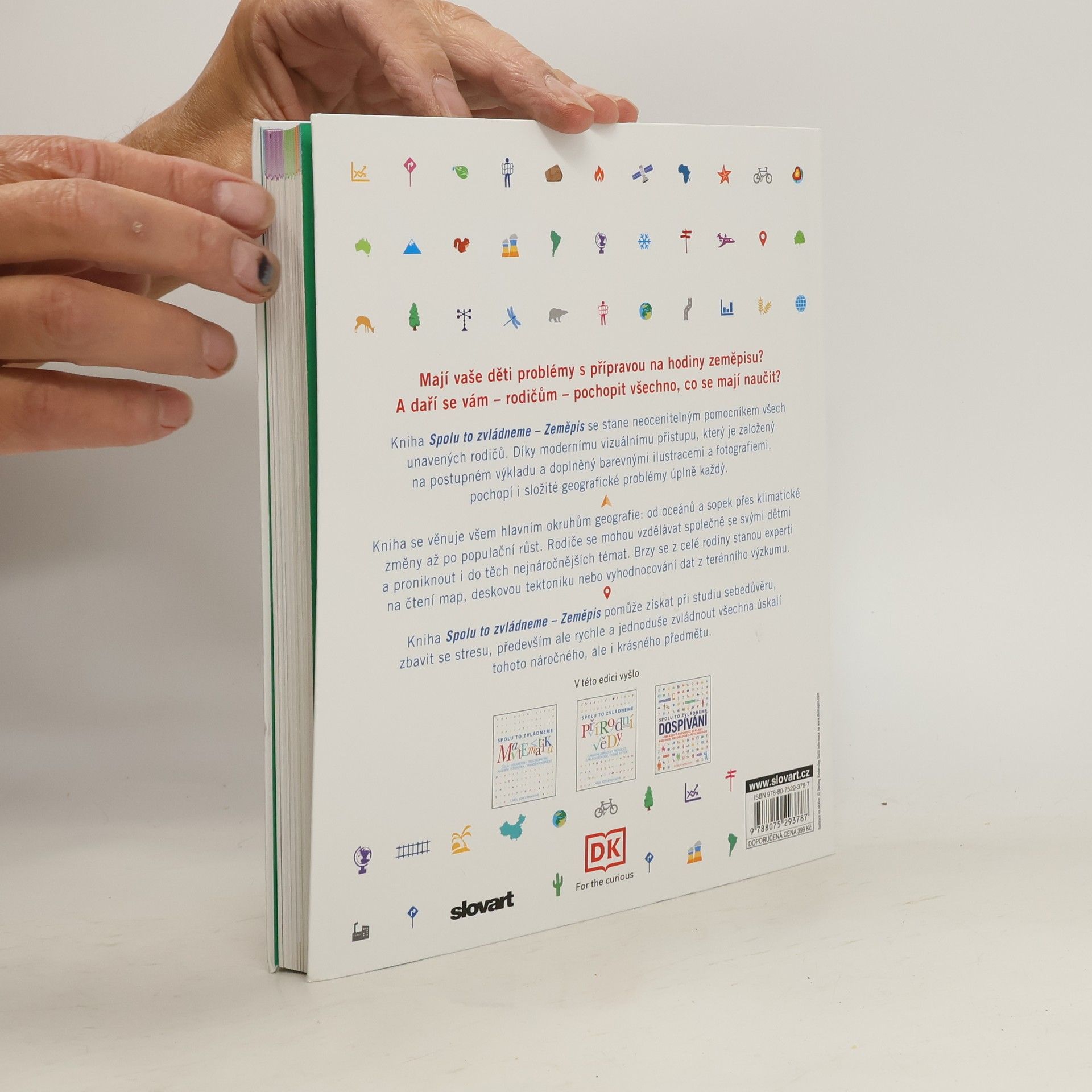 Jedním z hlavních předmětů v školních osnovách je zeměpis. Panuje totiž všeobecná shoda v tom, že je důležité, aby každý měl alespoň základní znalosti o světě. S nadšením pro zeměpis se pojí zvídavost: chceme vědět, jak naše planeta funguje jako celek. Může se ale stát, že vašeděti mají problémy s přípravou na hodiny zeměpisu. A daří se vám - rodičům - pochopit všechno, co se mají naučit? Zeměpis v edici Spolu to zvládneme se stane neocenitelným pomocníkem všech rodičů i jejich dětí. Díky modernímu vizuálnímu přístupu, založenému na postupném výkladu a doplněnému barevnými ilustracemi a fotografiemi, pochopí každý i složité geografické problémy. Zeměpis totiž není jen hromaděním faktů a čísel. Kniha se věnuje všem hlavním okruhům geografie - oceánům, tektonickým deskám, erozi, ekosystémům, globalizaci, udržitelnosti, klimatickým změnám… Při studiu pomůže rychle a jednoduše zvládnout různá úskalí tohoto předmětu. Dospělým a dětem přinese celou řadu příležitostí ke společné četbě a diskusím o světě. V této edici dosud vyšly Přírodní vědy, Matematika a Dospívání.