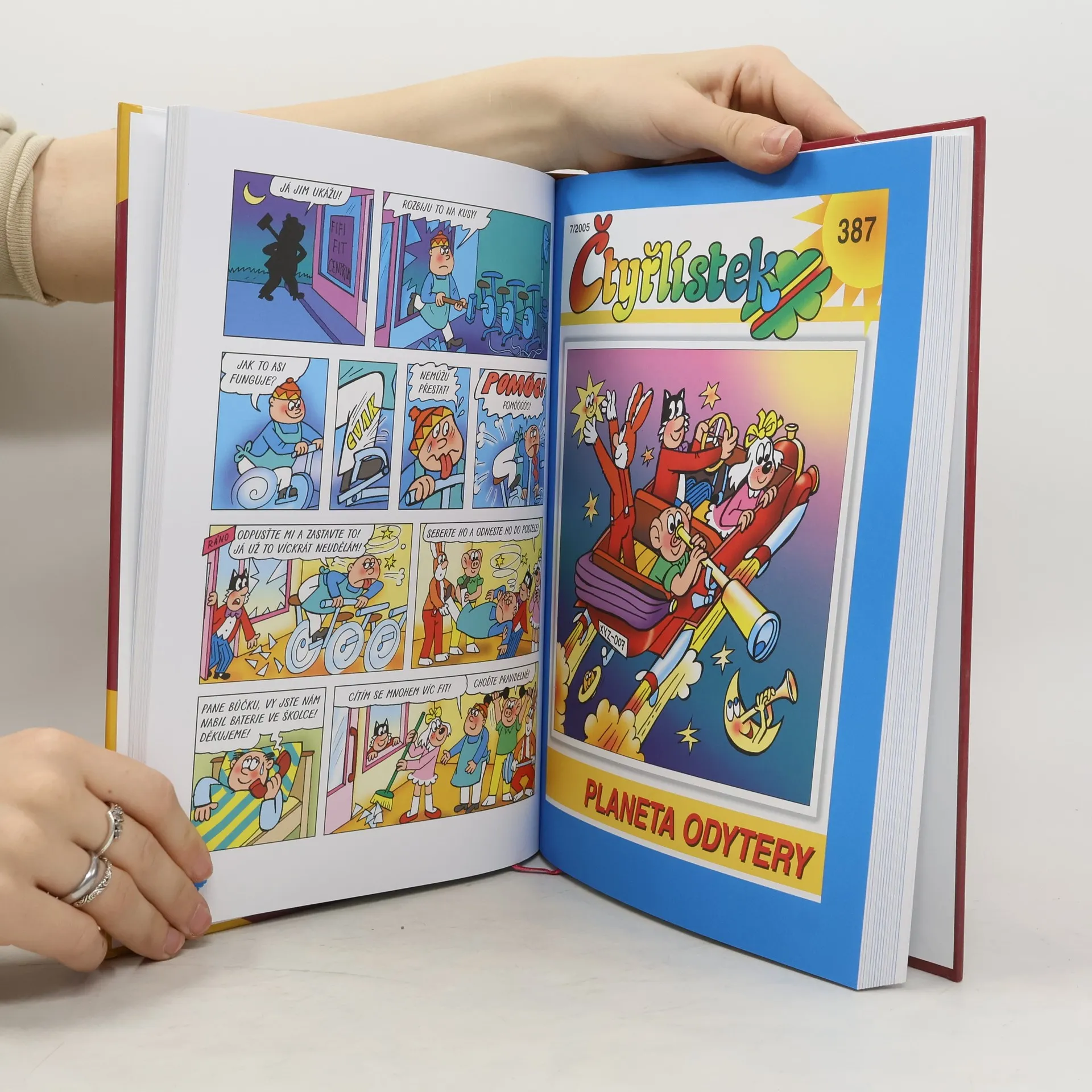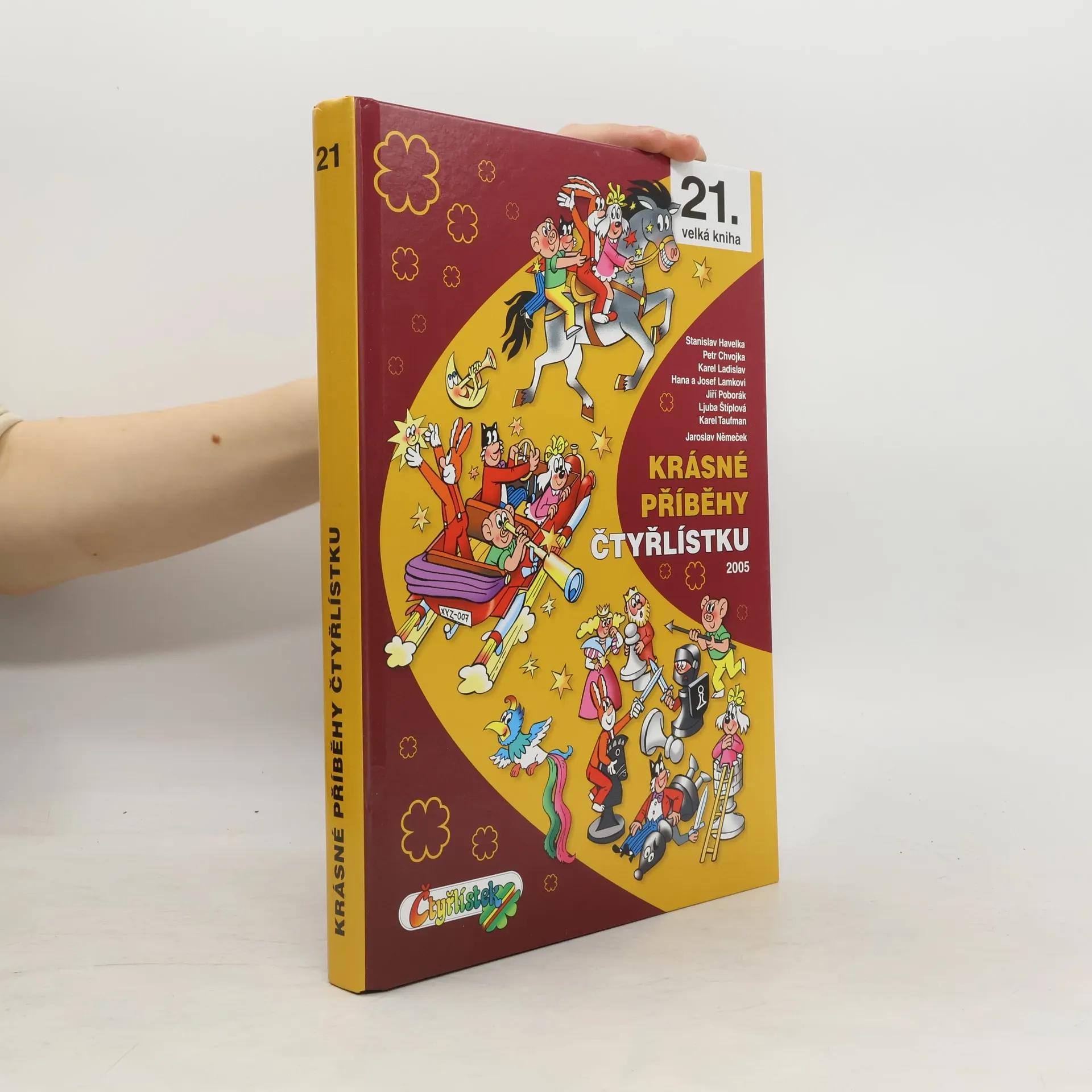Již jednadvacátá velká kniha této oblíbené edice přináší příběhy z čísel 381 až 400 z roku 2005. V prvním příběhu Čtyřlístek hlídá sousedce zlobivého papouška, kterého se pokusí ukrást lupič. V další části se vepříka Matěje snaží odvézt mimozemšťané. Na hradě Krucištejnu se Čtyřlístek musí bránit strašidlům, zatímco v Polykači ohně odhalí kouzlo staré hasičské stříkačky. Myšpulínův vynález Všelep přilepí vše, co mu přijde do cesty, a řezníka Bůčka čeká překvapení v novém Fifi-fit-centru. Čtyřlístek zažívá dobrodružství na Planetě Odytery a Pinďu zanesou do Tibetu Sedmimílové tenisky. V Podvodním tajemství se dozvíte, kdo krade kompoty, a v příběhu Horoskopy Fifinka způsobí zmatek. Oblek Cvičísám cvičí nejen za Bobíka, ale i se zlodějíčkem. Čtyřlístek láká turisty na hrad s Bílou paní a vymýšlí televizní pořad Superpanenky. V Peřejích čeká závodníky nebezpečná past, zatímco vesmírná dvojčata ničí Fifince záhon s rajčaty. Čtyřlístek se opět pouští do záchranné akce, když draci unášejí princeznu. Pinďa se dostává do tajemné třinácté komnaty a v jubilejním čtyřstém příběhu se parta ocitá na pustém ostrově pod dohledem kamer. Všechny příběhy jsou plné dobrodružství, napětí, humoru a přátelství. Kniha obsahuje také komiksový příběh Rexík a Čtyřlístek.