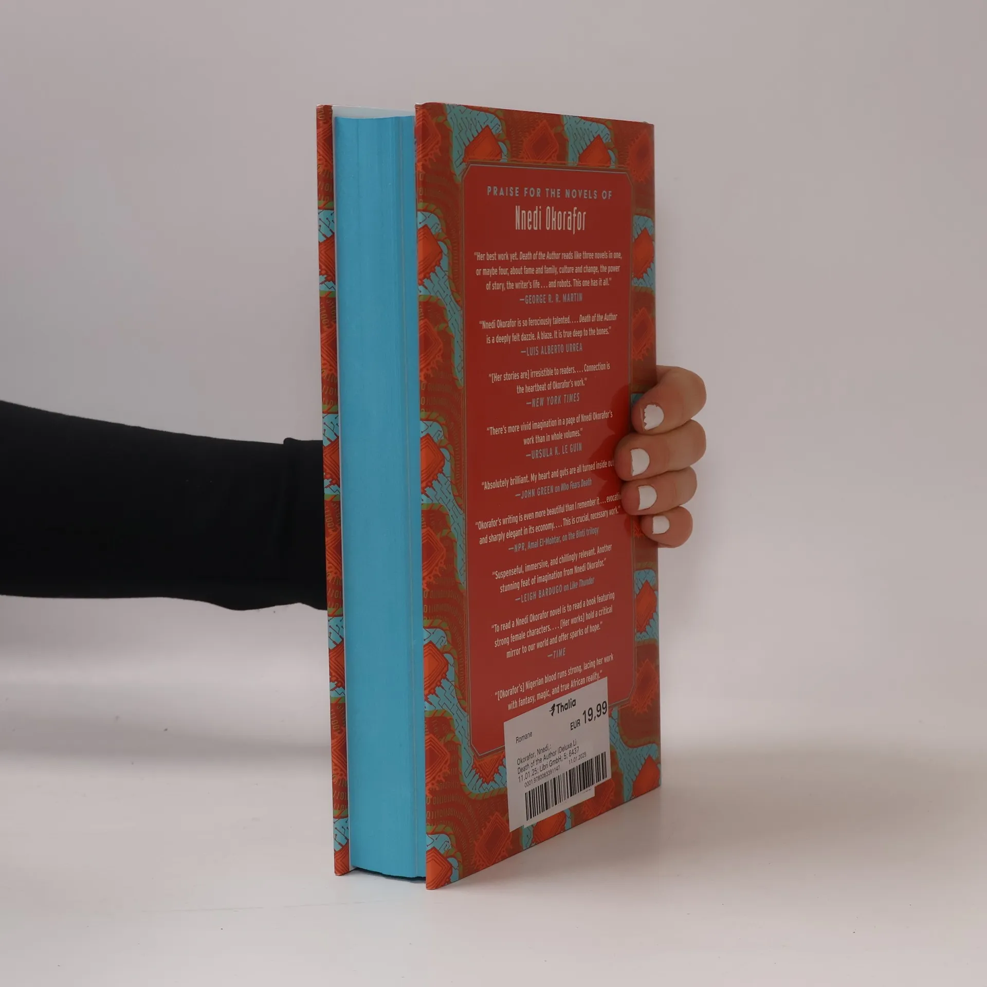 Preorder now to secure the stunning DELUXE LIMITED EDITION, featuring a unique alternate cover, beautiful sprayed edges, and exclusive endpapers—available only in a limited first print run. This exhilarating tale by bestselling author Nnedi Okorafor follows a disabled Nigerian American woman who writes a successful Sci-Fi novel. As her fame escalates, she finds herself losing control of her narrative in a poignant exploration of art, love, identity, and humanity. Zelu, feeling like an outcast in her Nigerian family, faces a turning point when she is fired from her university job during her sister's extravagant wedding and experiences yet another rejection from a publisher. In response, she decides to write for herself, producing a far-future epic titled Rusted Robots, where androids and AI battle in the remnants of human civilization. Sharing her unconventional novel thrusts Zelu into literary stardom, but it also threatens to undermine her original vision. Spanning from Chicago to Lagos and beyond, Zelu's journey intertwines with her creation, blurring the lines between author and narrative. This metafictional masterpiece combines sharp commentary with heartfelt storytelling, offering a funny, poignant, and thought-provoking tale about a woman risking everything to be heard and the transformative power of storytelling.