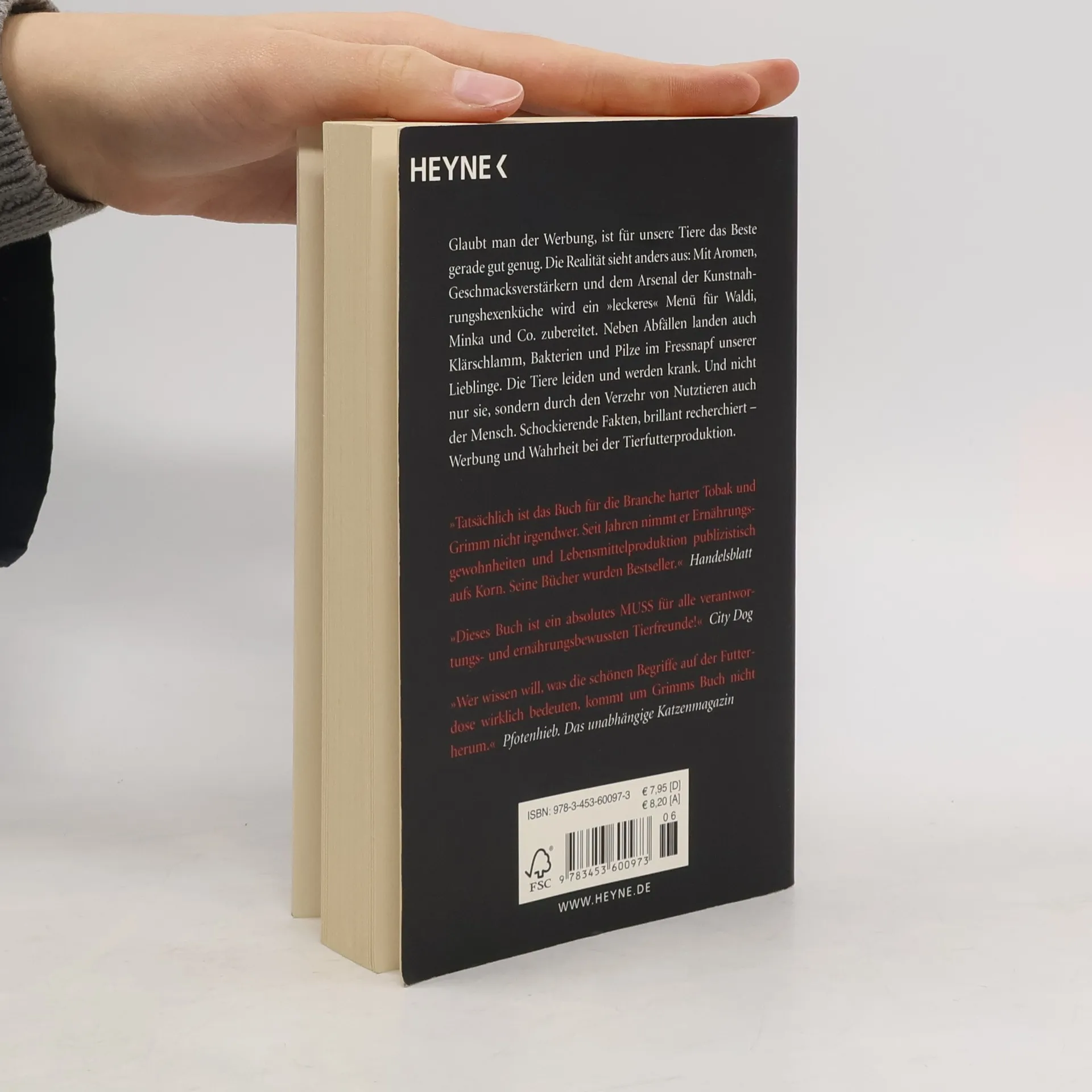 Glaubt man der Werbung, ist für unsere Tiere das Beste gerade gut genug. Doch die Realität sieht anders aus: Mit Aromen, Geschmacksverstärkern, Farbstoffen und dem ganzen Arsenal der Kunstnahrungshexenküche wird ein „leckeres“ Menü für Waldi, Minka und Co. zubereitet. Neben Abfällen, Krallen und Klauen landen auch Klärschlamm, Bakterien und Pilze im Fressnapf unserer Lieblinge. Die Tiere leiden und werden krank. Und nicht nur sie, sondern durch den Verzehr von Nutztieren auch der Mensch. Schockierende Fakten, brillant recherchiert – Werbung und Wahrheit bei der Tierfutterproduktion.