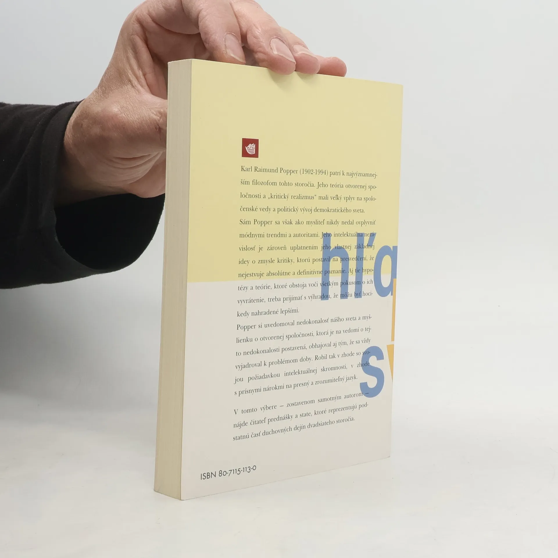 Karl Raimund Popper (1902-1994) patrí k najvýznamnejším filozofom tohto storočia. Jeho teória otvorenej spoločnosti a ,,kritický realizmus" mali veľký vplyv na spoločenské vedy a politický vývoj demokratického sveta. Sám Popper sa však ako mysliteľ nikdy nedal ovplyvniť módnymi trendami a autoritami. Jeho intelektuálna nezávislosť je zároveň uplatnením jeho vlastnej základnej idey o zmysle kritiky, ktorú postavil na presvedčený, že neexistuje absolútne a definitívne poznanie. Aj tie hypotézy a teórie, ktoré obstoja voči všetkým pokusom o ich vyvrátenie, treba prijímať s výhradou že, môžu byť hocikedy nahradené lepšími. Popper si uvedomoval nedokonalosť nášho sveta a myšlienku o otvorenej spoločnosti, ktorá je na vedomé tejto nedokonalosti postavená, obhajoval aj tým, že sa vždy vyjadroval k problémom doby. Robil tak v zhode so svojou požiadavkou intelektuálnej skromnosti, v zhode s prísnymi nárokmi na presný a zrozumiteľný jazyk. V tomto výbere - zostavenom samotným autorom - nájde čitateľ prednášky a state, ktoré reprezentujú podstatnú časť duchovných dejín dvadsiateho storočie.