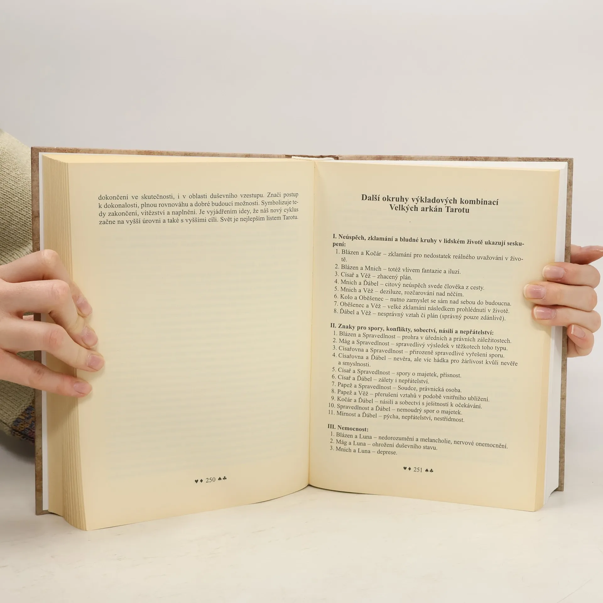 Autorka knihy se věnuje výkladům z hracích mariášových karet a piketových hracích karetních soustav, k nimž je v této knize zájemcům poskytnut přesný a podrobný návod s příslušnými náležitostmi V příručce jsou obsaženy i obrázky a fotografie karet. pevná vazba - imitace kůže