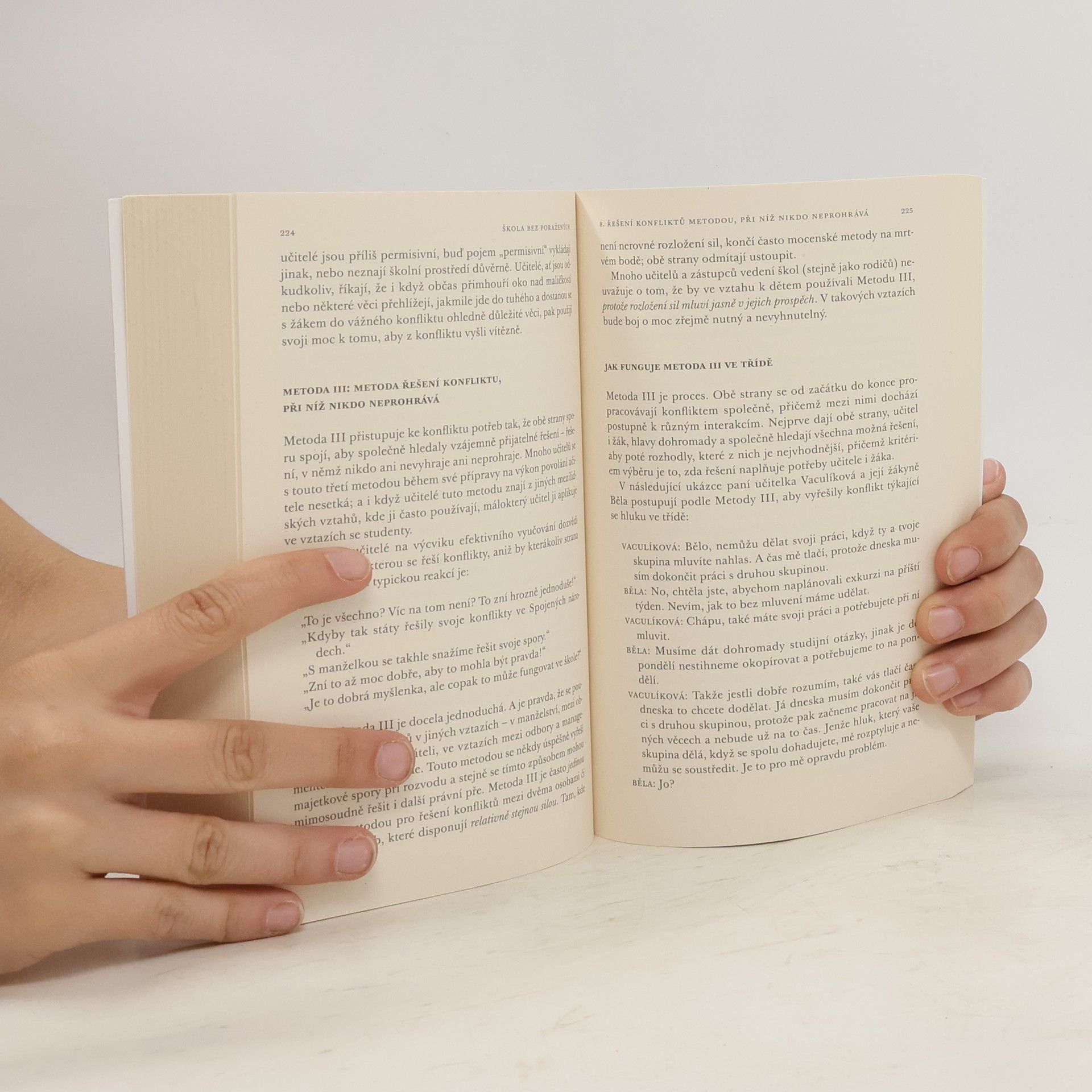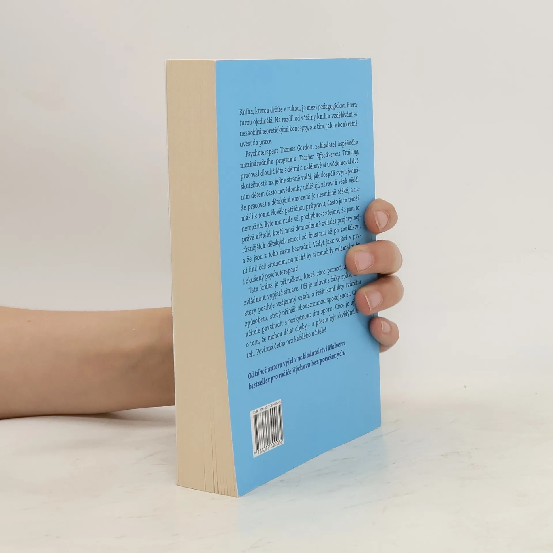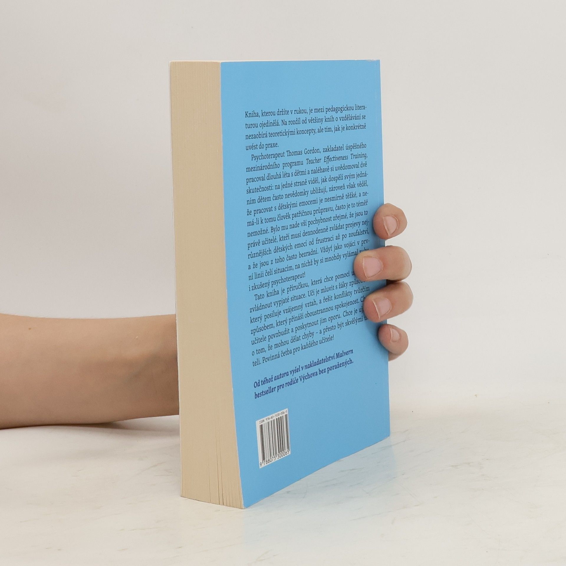 Kniha, kterou držíte v rukou, je mezi pedagogickou literaturou ojedinělá. Na rozdíl od většiny knih o vzdělávání se nezaobírá teoretickými koncepty, ale tím, jak je konkrétně uvést do praxe. Tato kniha je příručkou, která chce pomoci učitelům zvládnout vypjaté situace. Učí je mluvit s žáky způsobem, který posiluje vzájemný vztah, a řešit konflikty tvůrčím způsobem, který přináší oboustrannou spokojenost. Chce učitele povzbudit a poskytnout jim oporu. Chce je ujistit o tom, že mohou dělat chyby – a přesto být skvělými učiteli. Povinná četba pro každého učitele! Psychoterapeut Thomas Gordon, zakladatel úspěšného mezinárodního programu Teacher Effectiveness Training, pracoval dlouhá léta s dětmi a naléhavě si uvědomoval dvě skutečnosti: Na jedné straně viděl, jak dospělí svým jednáním dětem často nevědomky ubližují. Zároveň však věděl, že pracovat s dětskými emocemi je nesmírně těžké, a nemá-li k tomu člověk patřičnou průpravu, často je to téměř nemožné. Bylo mu nade vší pochybnost zřejmé, že jsou to právě učitelé, kteří musí denodenně zvládat projevy nejrůznějších dětských emocí od frustraci až po zoufalství, a že jsou z toho často bezradní. Vždyť jako vojáci v první linii čelí situacím, na nichž by si mnohdy vylámal zuby i zkušený psychoterapeut!