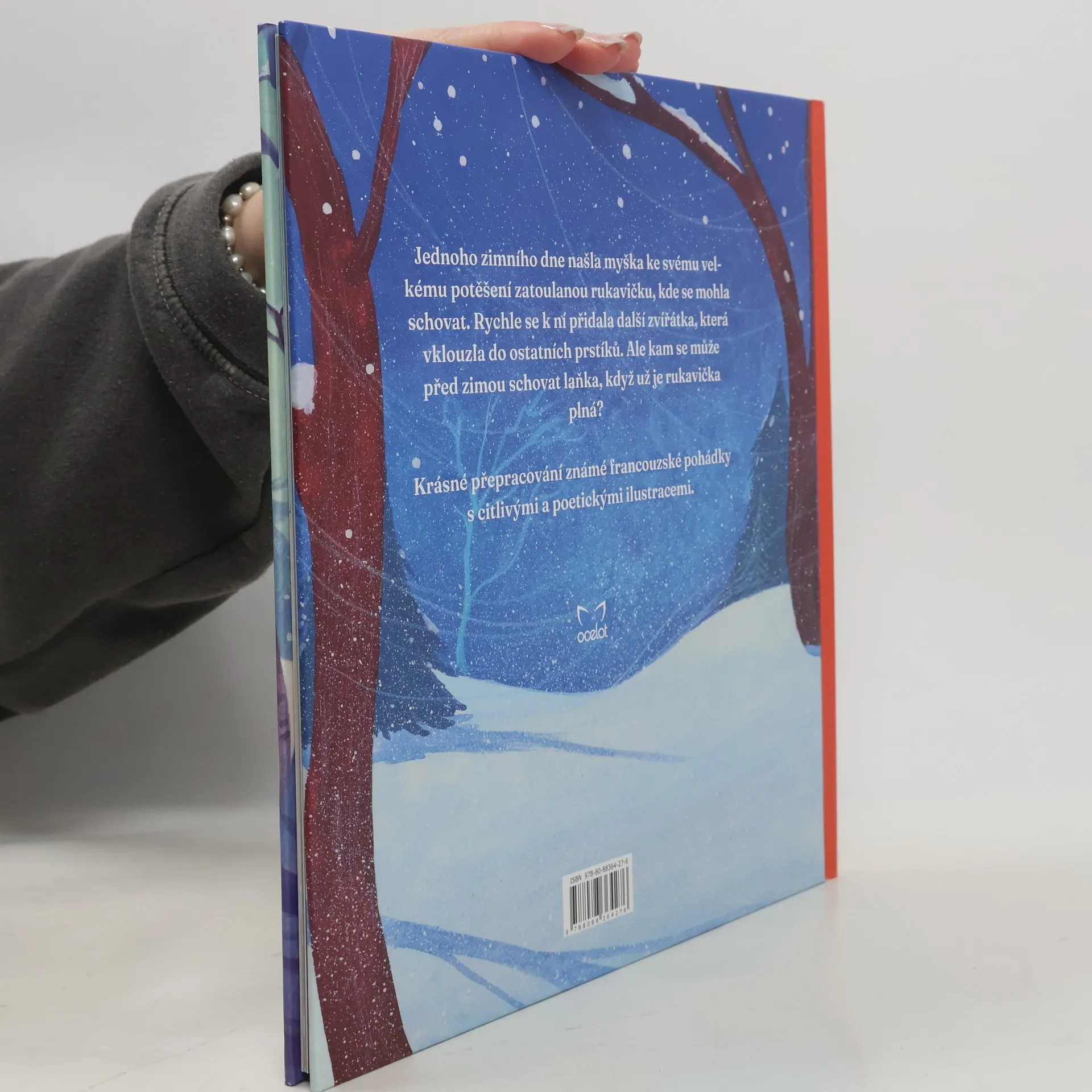 Jednoho zimního dne našla myška ke svému velkému potěšení zatoulanou rukavičku, kde se mohla schovat. Rychle se k ní přidala další zvířátka, která vklouzla do ostatních prstíků. Ale kam se může před zimou schovat laňka, když už je rukavička plná?Krásné přepracování známé francouzské pohádky s citlivými a poetickými ilustracemi.