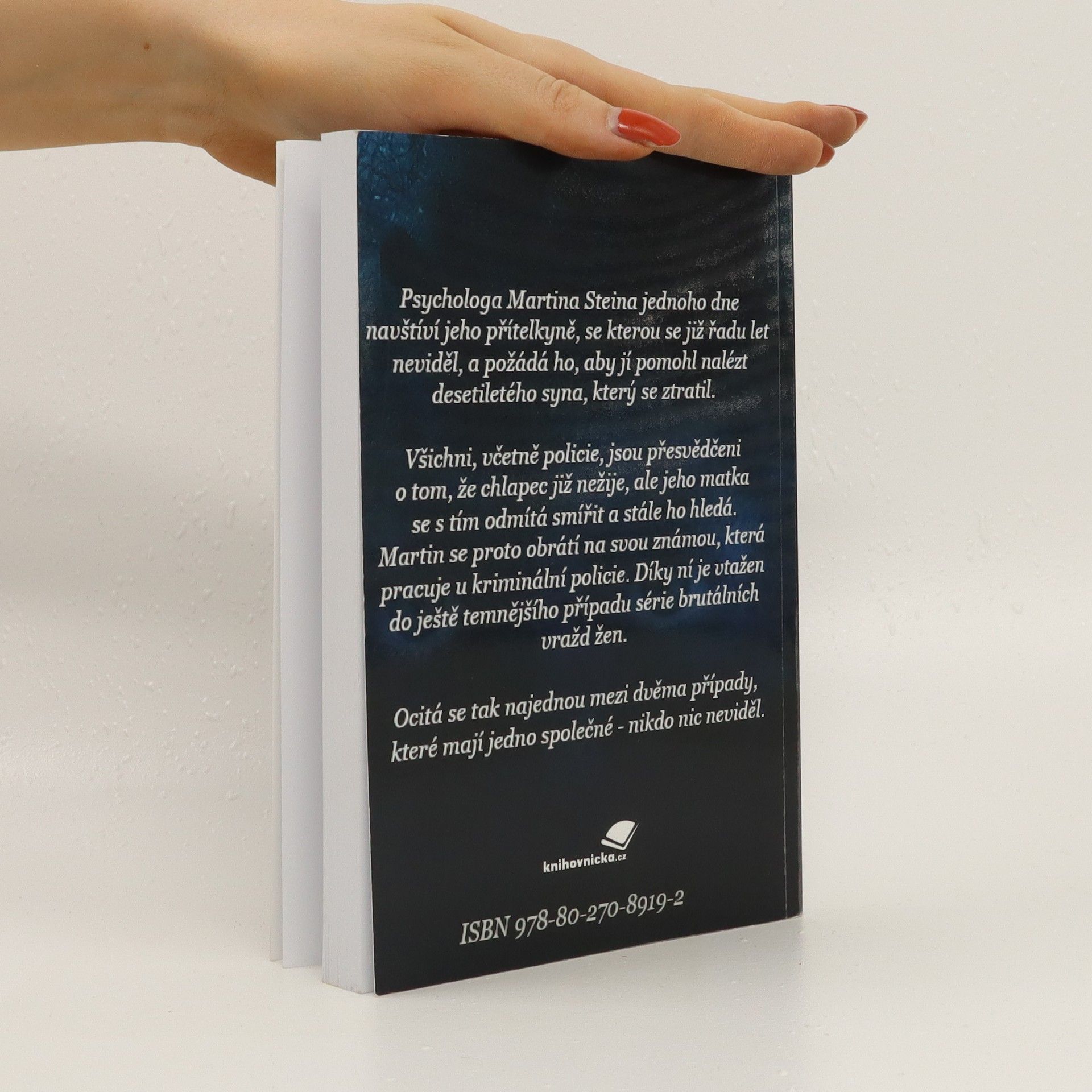 Psychologa Martina Steina jednoho dne navštíví jeho přítelkyně, se kterou se již řadu let neviděl, a požádá ho, aby jí pomohl nalézt desetiletého syna, který se ztratil. Všichni, včetně policie, jsou přesvědčeni o tom, že chlapec již nežije, ale jeho matka se s tím odmítá smířit a stále ho hledá. Martin se proto obrátí na svou známou, která pracuje u kriminální policie. Díky ní je vtažen do ještě temnějšího případu série brutálních vražd žen. Ocitá se tak najednou mezi dvěma případy, které mají jedno společné – nikdo nic neviděl.