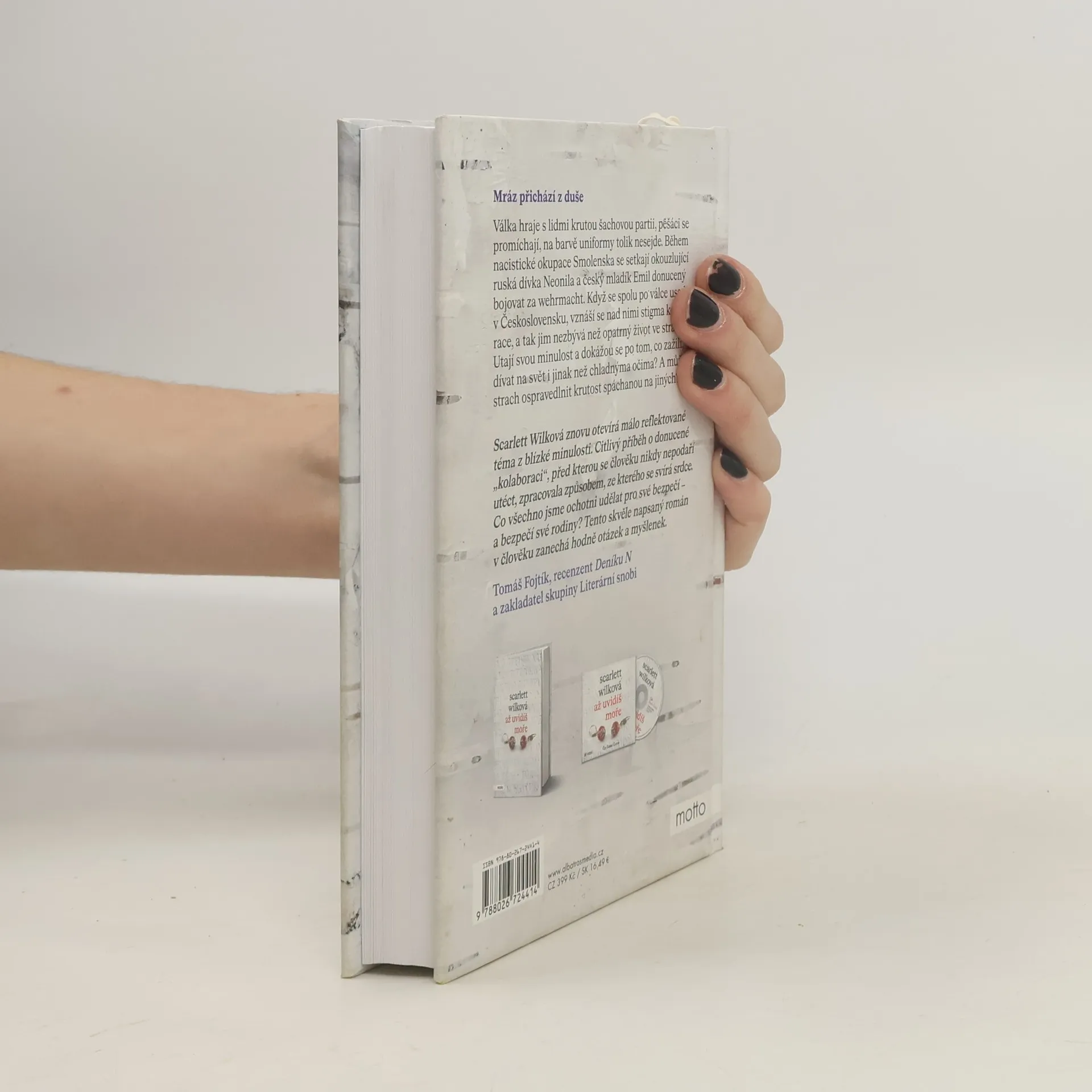 Mráz přichází z duše. Historický román od autorky bestselleru Až uvidíš moře.Válka hraje s lidmi krutou šachovou partii, pěšáci se promíchají, na barvě uniformy tolik nesejde. Během nacistické okupace Smolenska se setkají okouzlující ruská dívka Neonila a český mladík Emil donucený bojovat za wehrmacht. Když se spolu po válce usadí v Československu, vznáší se nad nimi stigma kolaborace, a tak jim nezbývá než opatrný život ve strachu. Utají svou minulost a dokážou se po tom, co zažili, dívat na svět i jinak než chladnýma očima? A může strach ospravedlnit krutost spáchanou na jiných? Scarlett Wilková přichází s druhým románem, v němž opět otevírá citlivé a málo reflektované téma novodobých dějin.