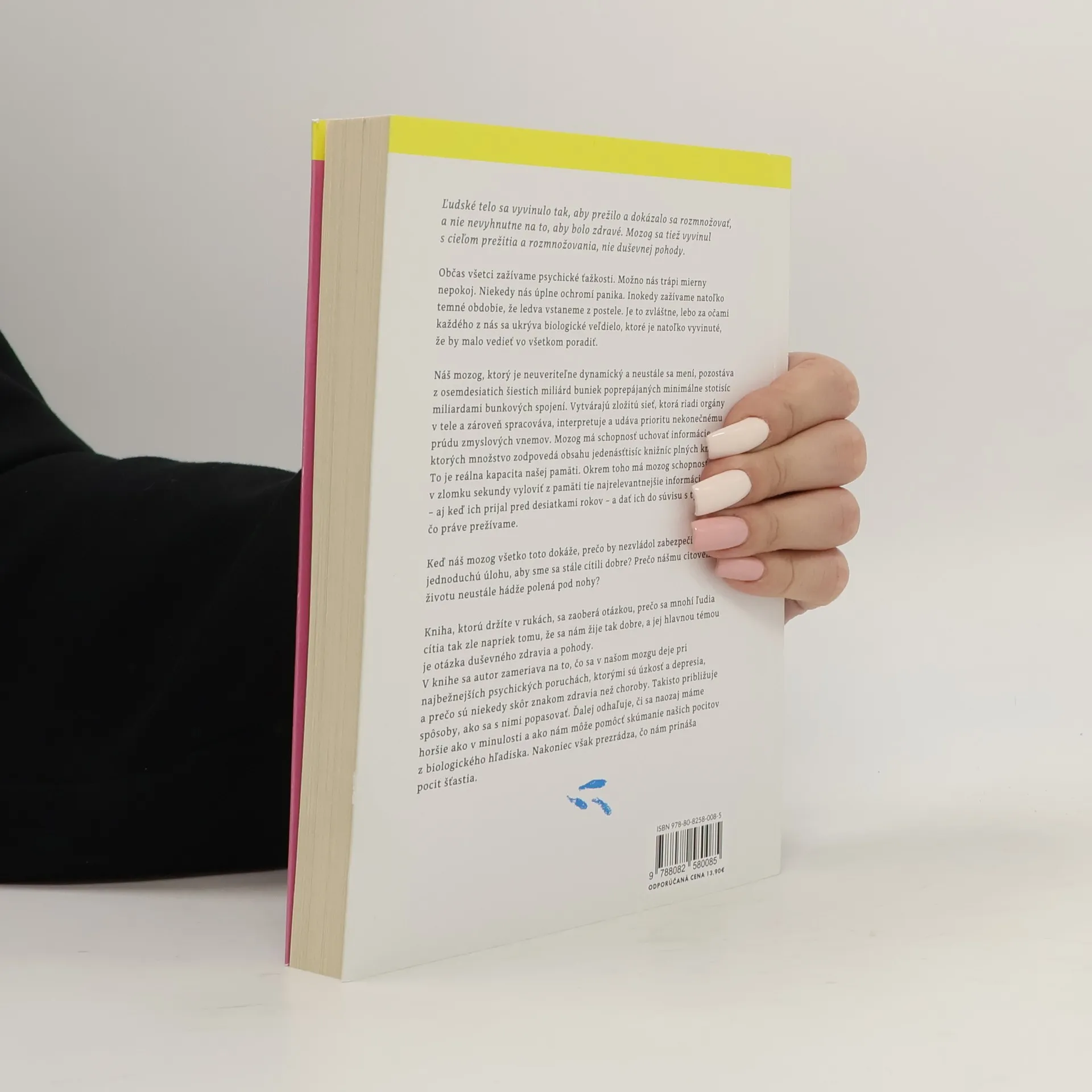Ľudské telo a mozog sa vyvinuli na prežitie a rozmnožovanie, nie na duševnú pohodu. Všetci občas zažívame psychické ťažkosti, od mierneho nepokoja po ťažké depresie. Náš mozog, s osemdesiatimi šiestimi miliardami buniek a stotisíc miliardami spojení, spracováva zmyslové vnímanie a uchováva obrovské množstvo informácií. Napriek tejto kapacite sa mnohí z nás cítia zle, čo vyvoláva otázku, prečo náš emocionálny život čelí prekážkam. Kniha skúma, prečo sa mnohí cítia zle, aj keď sa nám žije dobre, a zameriava sa na duševné zdravie a pohodu. Autor sa zaoberá procesmi v mozgu pri psychických poruchách, ako sú úzkosť a depresia, a naznačuje, prečo môžu byť niekedy znakom zdravia. Ponúka aj stratégie, ako sa s týmito problémami vyrovnať, a skúma, či sa máme skutočne horšie ako v minulosti. Zároveň sa zaoberá biologickými aspektmi našich pocitov a odhaľuje, čo nám prináša skutočný pocit šťastia.