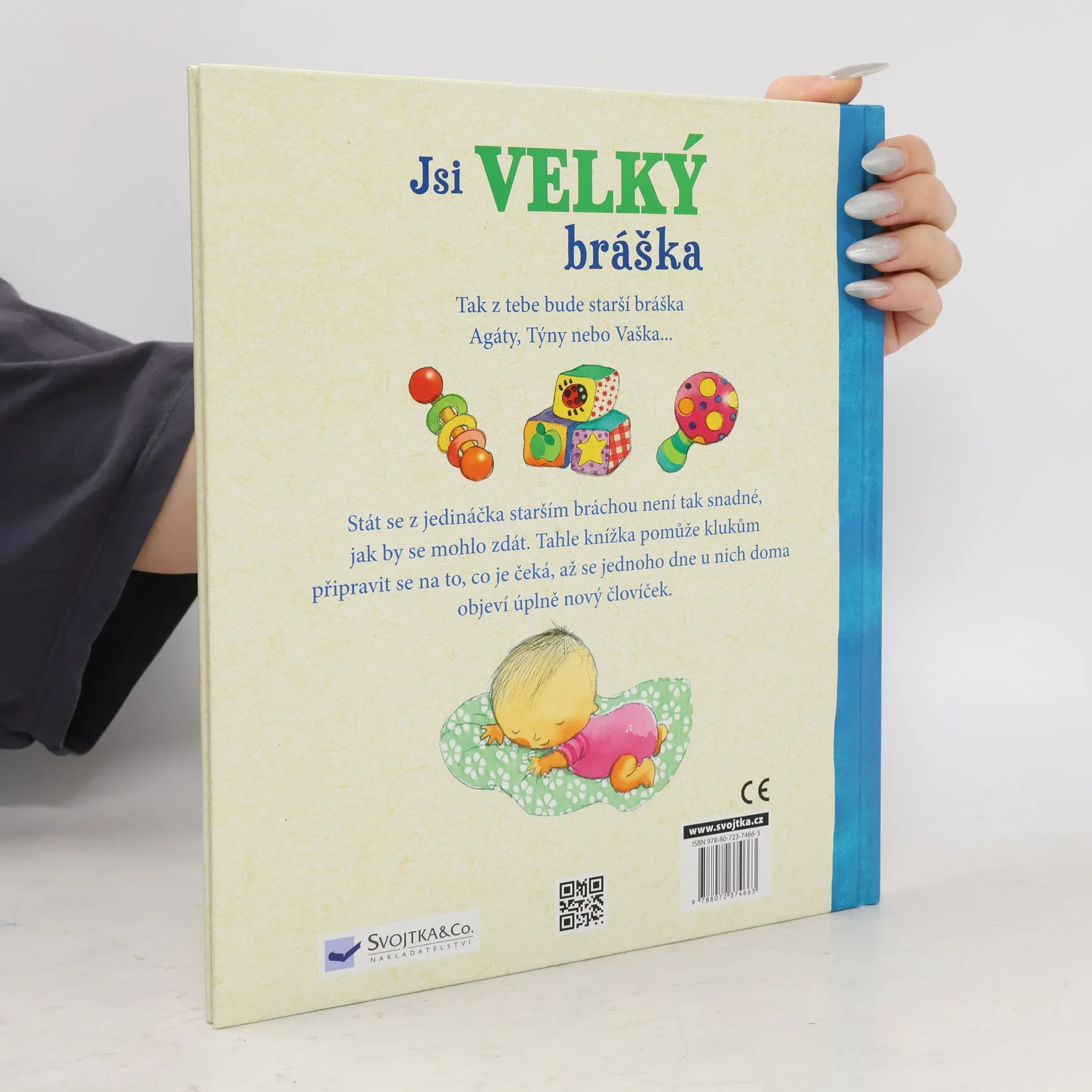 Tak z tebe bude starší bráška Agáty, Týny nebo Vaška ... Mít mladšího brášku nebo sestřičku je radost – ale taky velká změna. Spousta věcí bude najednou jinak. A stát se z jedináčka starším bráchou není tak snadné, jak by se mohlo zdát. Tahle knížka s celostránkovými barevnými ilustracemi a jednoduchým textem pomůže klukům připravit se na to, co je čeká, až se jednoho dne u nich doma objeví úplně nový človíček. Protože být „velkým“ bráchou je moc príma.