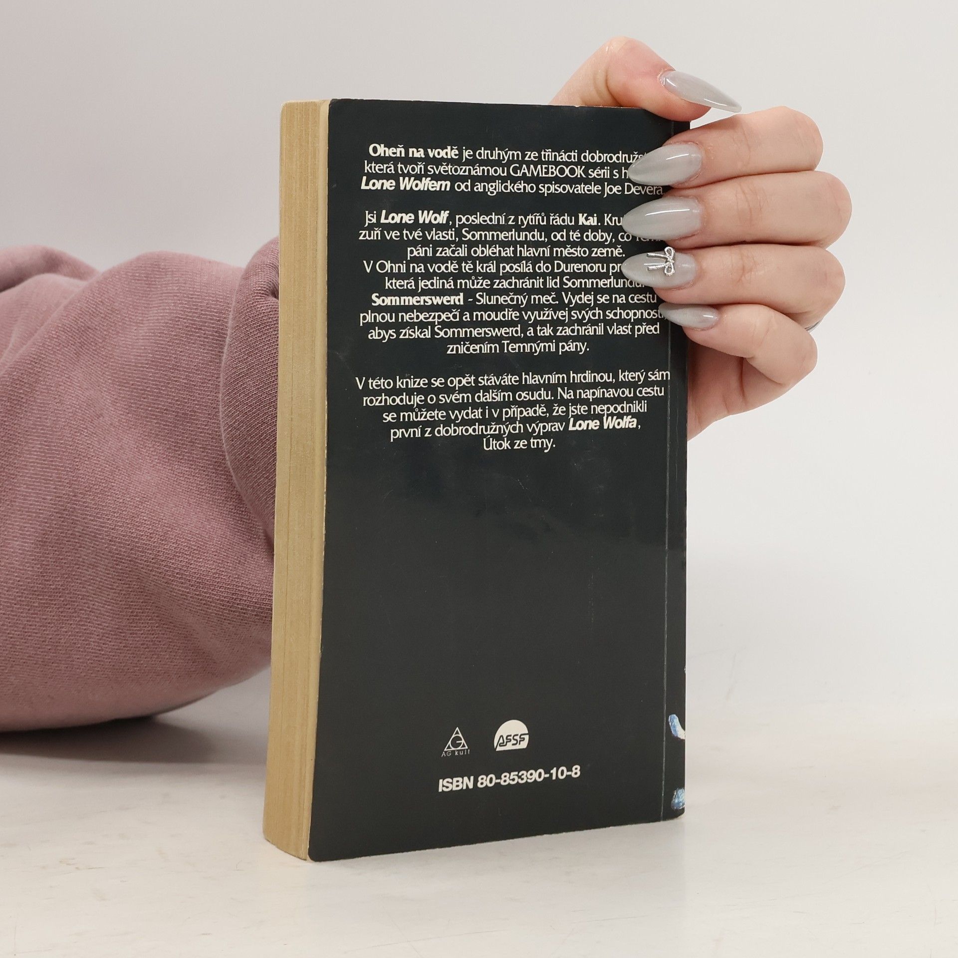 Druhá kniha série Kai. Jsi Lone Wolf, poslední z rytířů řádu Kai. Krutá válka zuří ve tvé vlasti, Sommerlundu, od té doby, co Temní páni začali obléhat hlavní město země. V Ohni na vodě tě král posílá do Durenoru pro zbraň, která jediná může zachránit lid Sommerlundu: Sommerswerd - Sluneční meč. Vydej se na cestu plnou nebezpečí a moudře využívej svých schopností, abys získal Sommerswerd, a tak zachránil vlast před zničením Temnými pány. V této knize se opět stáváte hlavním hrdinou, který sám rozhoduje o svém dalším osudu. Na napínavou cestu se můžete vydat i v případě, že jste nepodnikli první z dobrodružných výprav Lone Wolfa, Útok ze tmy.