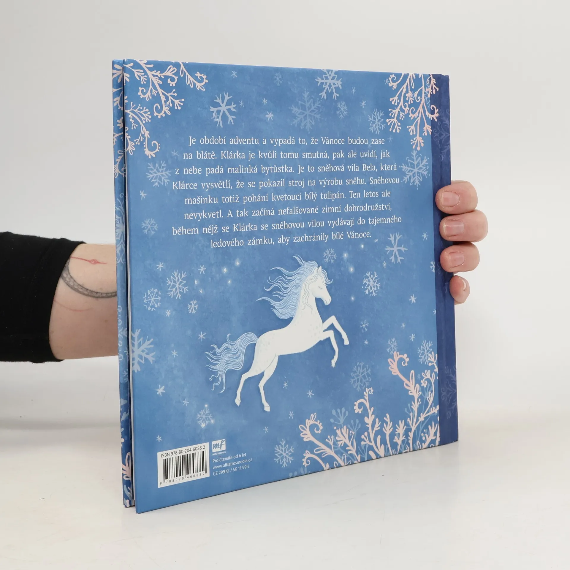 Je období adventu a vypadá to, že Vánoce budou zase na blátě. Klárka je kvůli tomu smutná, pak ale uvidí, jak z nebe padá malinká bytůstka. Je to sněhová víla Bela, která Klárce vysvětlí, že se pokazil stroj na výrobu sněhu. Sněhovou mašinku totiž pohání kvetoucí bílý tulipán. Ten letos ale nevykvetl. A tak začíná nefalšované zimní dobrodružství, během nějž se Klárka se sněhovou vílou vydávají do tajemného ledového zámku, aby zachránily bílé Vánoce.