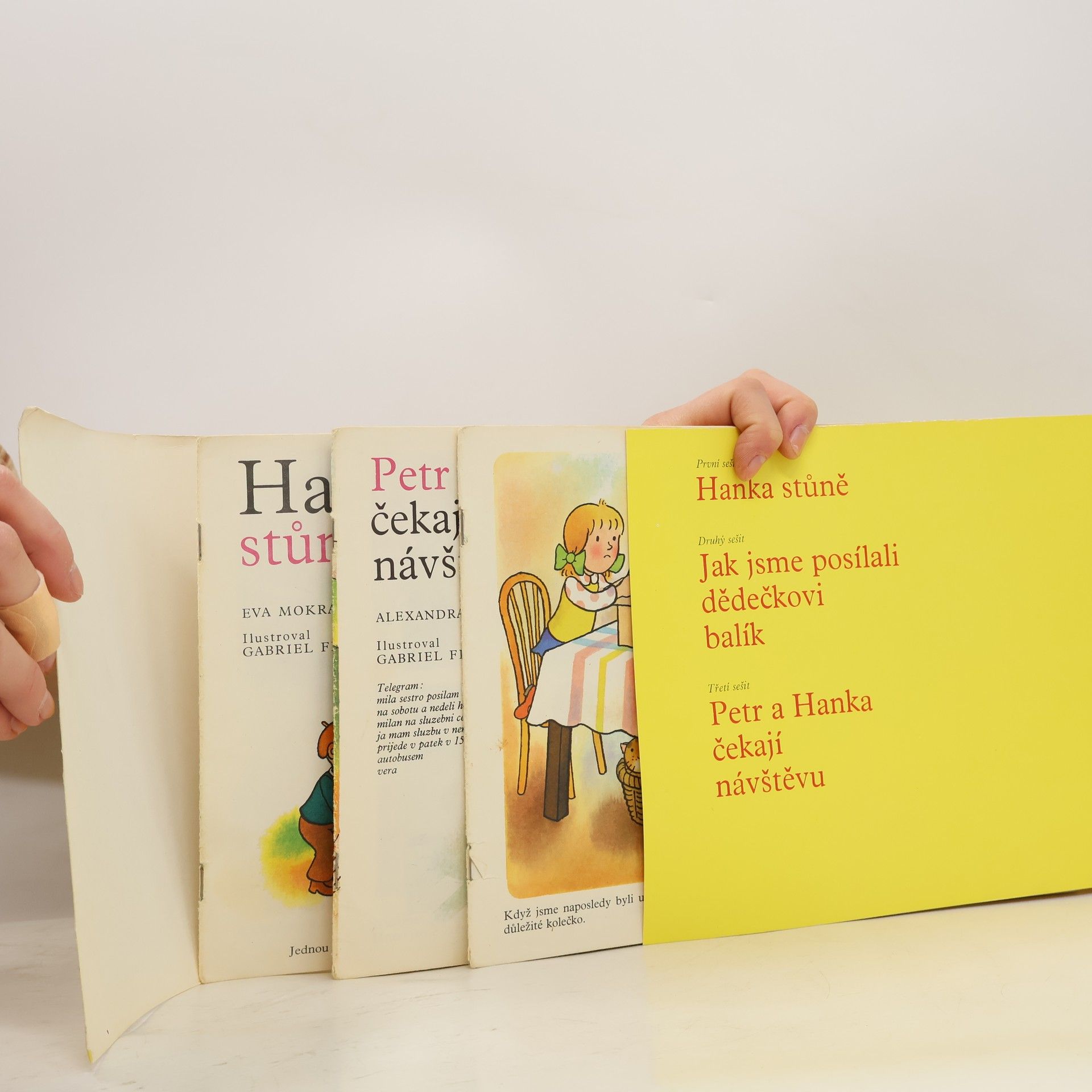 3 obrázkové sešity pro děti předškolního věku: Hanka stůně, Jak jsme posílali dědečkovi balík, Petr a Hanka čekají návštěvu