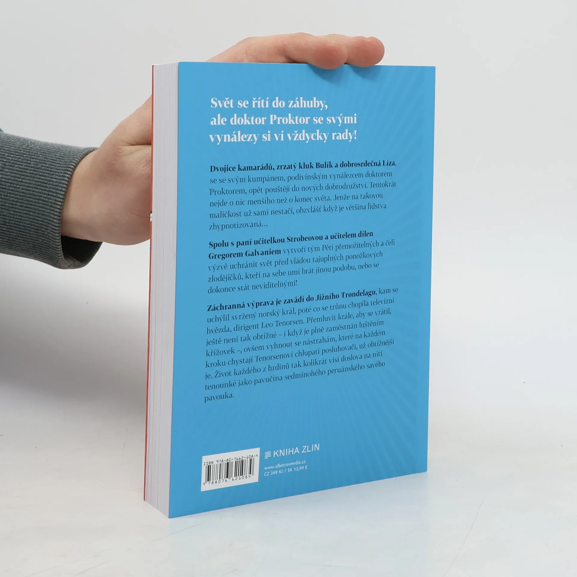 Svět se řítí do záhuby, ale doktor Proktor se svými kamarády a vynálezy si ví vždycky rady! Dvojice kamarádů, zrzatý kluk Bulík a dobrosrdečná Líza, se se svým kumpánem, podivínským vynálezcem doktorem Proktorem opět pouštějí do nových dobrodružství. Tentokrát nejde o nic menšího než o konec světa. Jenže na takovou maličkost už sami nestačí, a tak spojí síly s učiteli, starými známými nebo třeba se sedminohým peruánským pavoukem. Tým Pěti přemožitelných čelí výzvě zachránit svět před vládou ponožkových zlodějů a nenechat ze sebe přitom nadělat vafle.